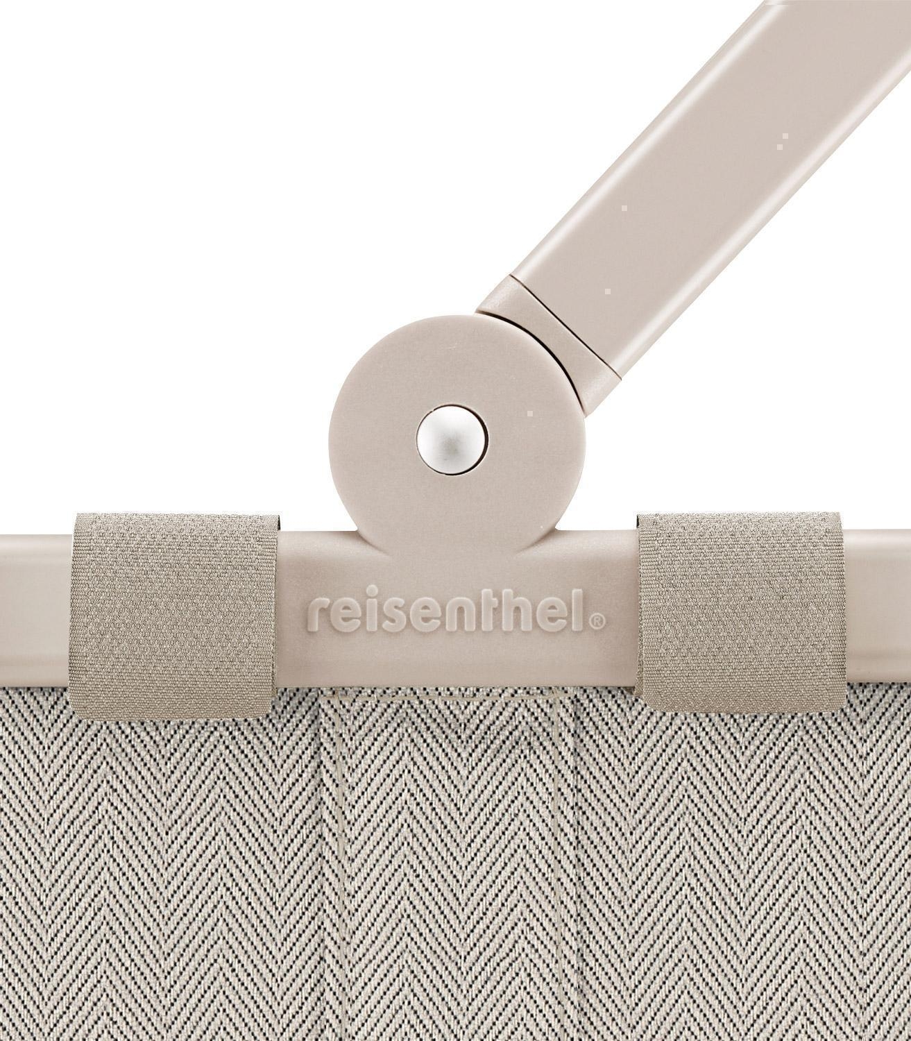Der Einkaufskorb CARRYBAG JACK LIMITED EDITION SAND ist eine exklusive und limitierte Edition von Reisenthel in der Farbe Sandgrau mit Herringbone-Muster. Die Kombination wird durch den ebenfalls in Sandgrau gehaltenen Griff besonders, da der Einkaufsbegleiter so nur bei Möbel Jack erhältlich ist. Der Korb ist eine praktische und umweltfreundliche Lösung für Ihren Einkauf. Hergestellt aus recycelten PET-Flaschen, trägt er aktiv zum Umweltschutz bei. Mit einem stabilen Aluminiumrahmen und einem ummantelten Griff bietet er Komfort und Langlebigkeit. Ein inneres Fach mit Reißverschluss sorgt für die sichere Aufbewahrung kleinerer Gegenstände. Bei Nichtgebrauch kann der Korb platzsparend zusammengefaltet werden. Mit einem Fassungsvermögen von 22 Litern bietet er ausreichend Platz für Ihre Einkäufe und ist zudem bis max. 20 kg belastbar. Praktisch, umweltfreundlich und stilvoll - der exklusive CARRYBAG mit dem Fischgrätenmuster macht Ihren Einkauf zum Vergnügen.