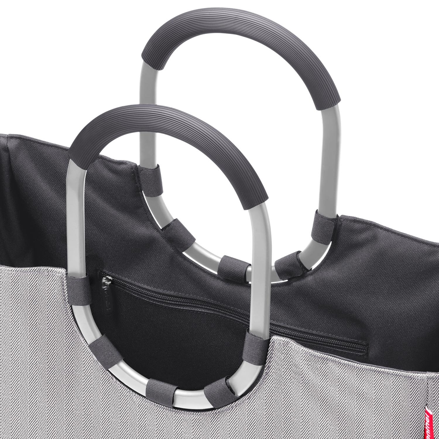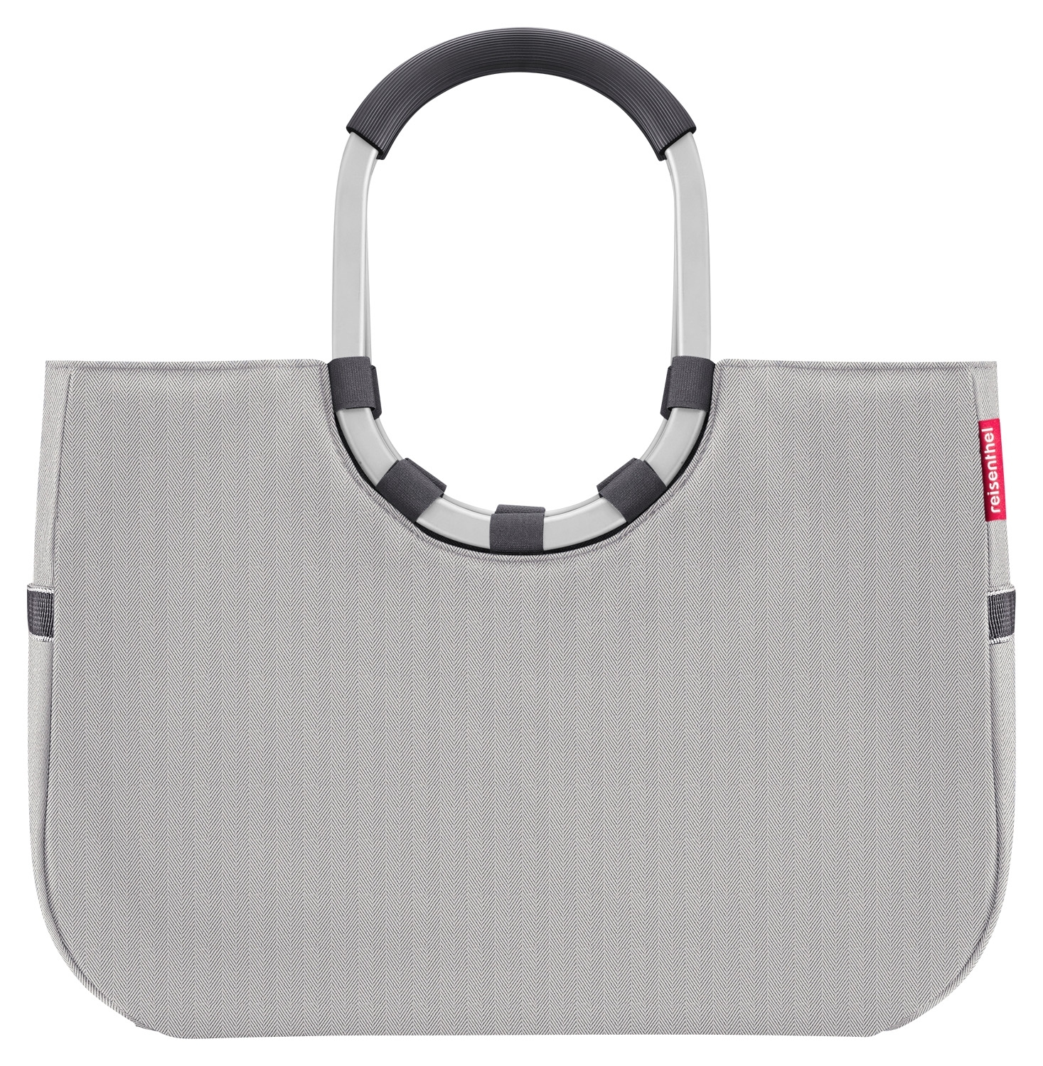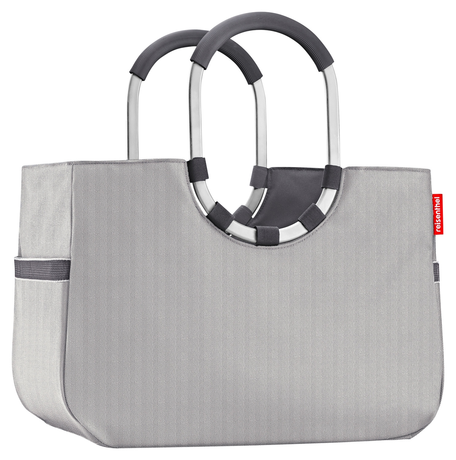 Die Einkaufstasche LOOPSHOPPER L HERRINGBONE GREY von Reisenthel mit 25 Litern Fassungsvermögen ist aus wasserabweisendem Polyester in Grau und Schwarz gefertigt. Sie verfügt über gepolsterte Aluminium-Tragegriffe, eine Innentasche mit Reißverschluss und zwei Außenstecktaschen. Die Standfüße schützen vor Feuchtigkeit. Maße: 46 x 34 cm. Mit ihren ringförmigen Tragegriffen ist sie sowohl stilvoll als auch praktisch.