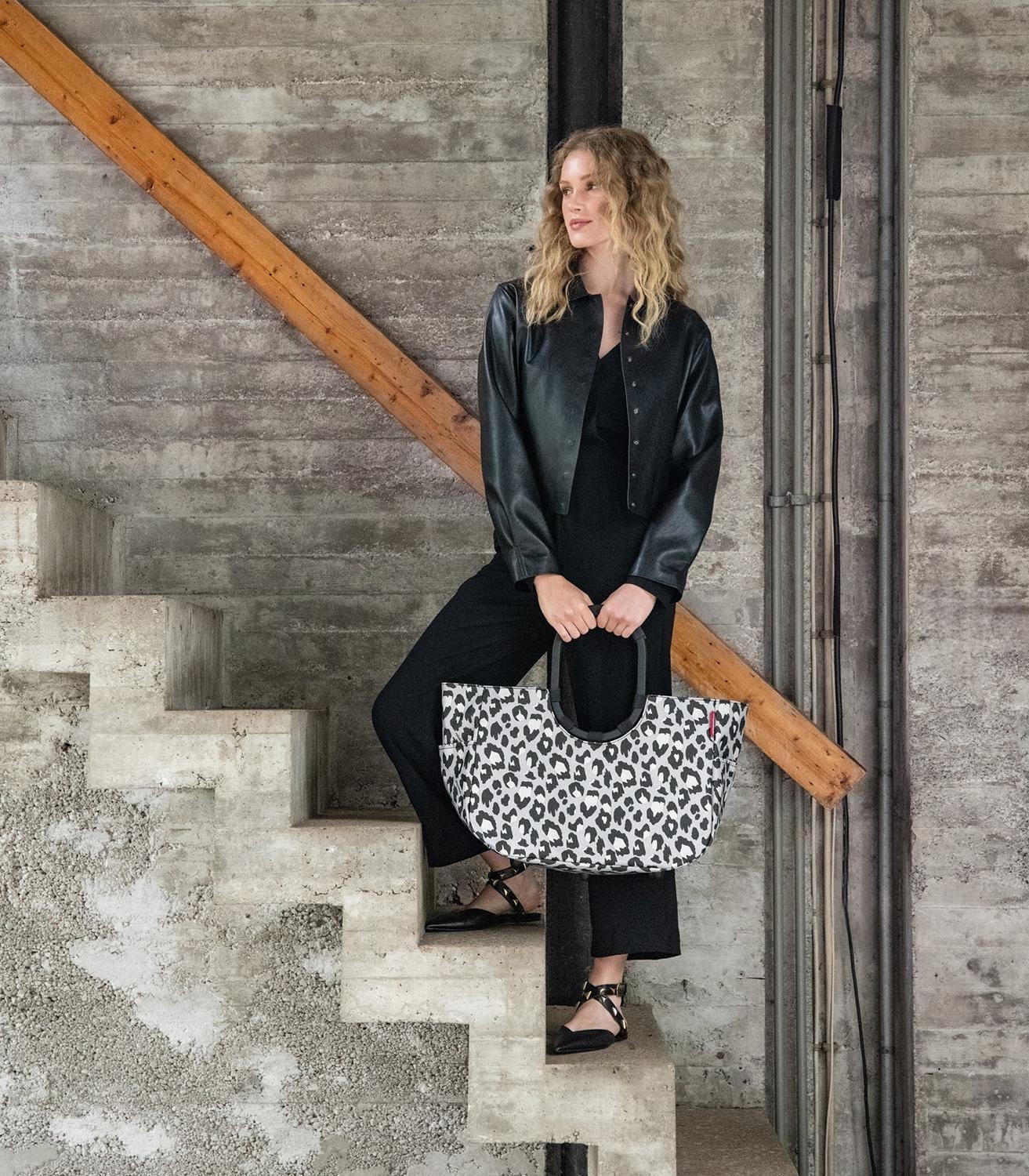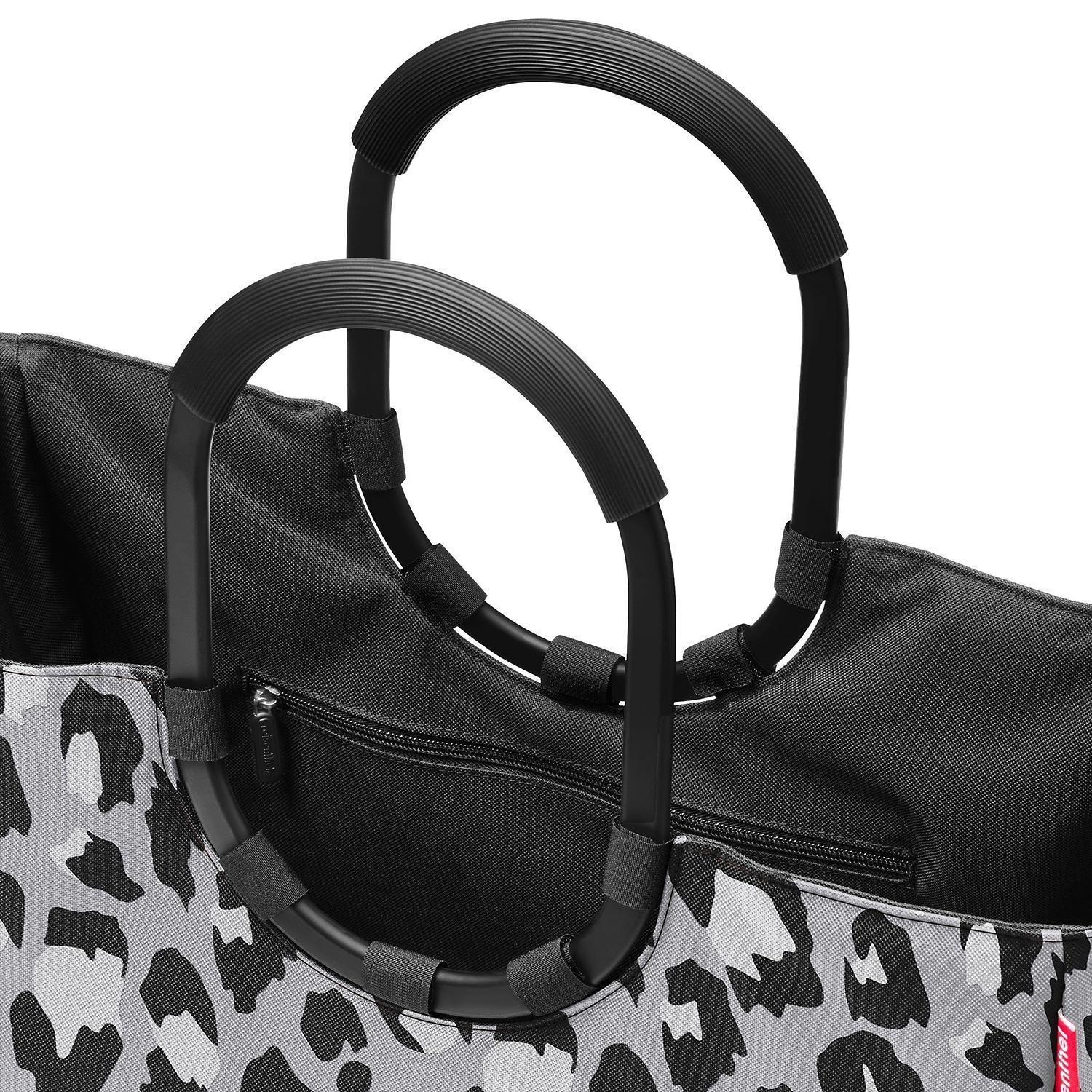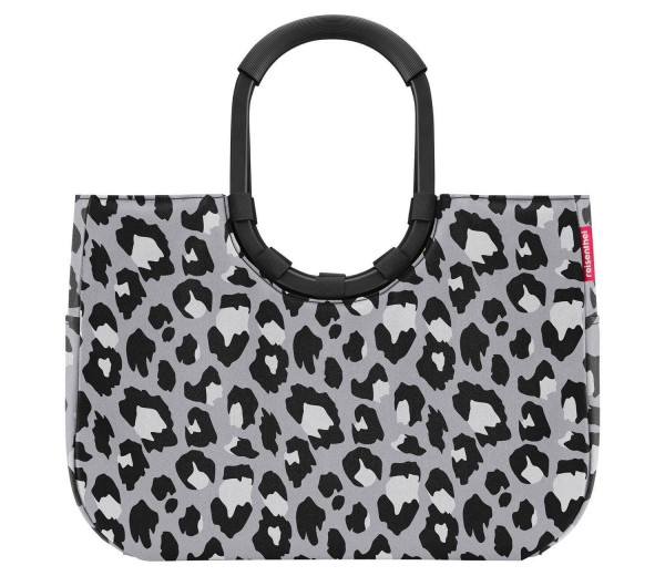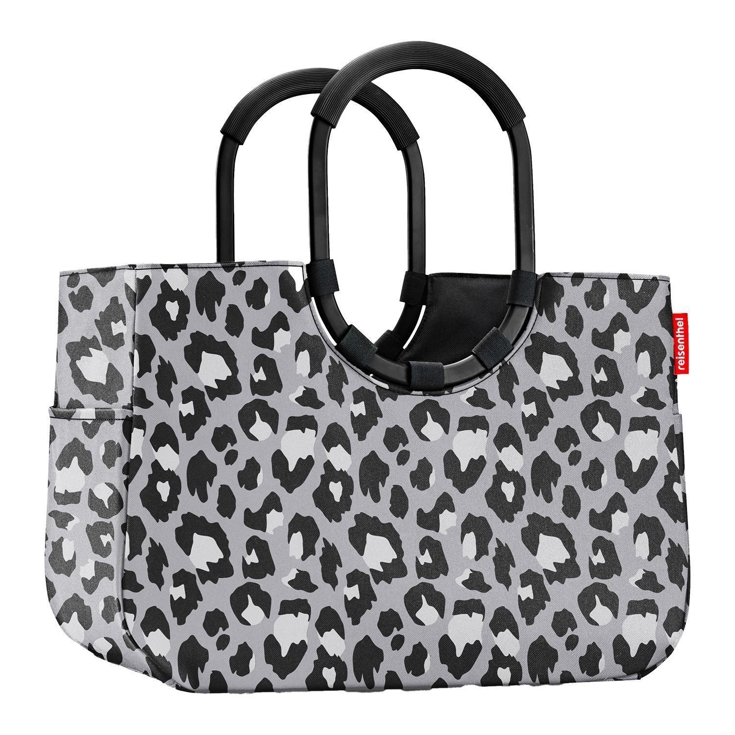 Die Einkaufstasche LOOPSHOPPER L LEO NERO von Reisenthel mit 25 Litern Fassungsvermögen ist aus wasserabweisendem Polyester mit Leopardenmuster in Grau, Schwarz und Weiß gefertigt. Sie verfügt über gepolsterte Aluminium-Tragegriffe, eine Innentasche mit Reißverschluss und zwei Außenstecktaschen. Die Standfüße schützen vor Feuchtigkeit. Maße: 46 x 34 cm. Mit ihren ringförmigen Tragegriffen ist sie sowohl stilvoll als auch praktisch.