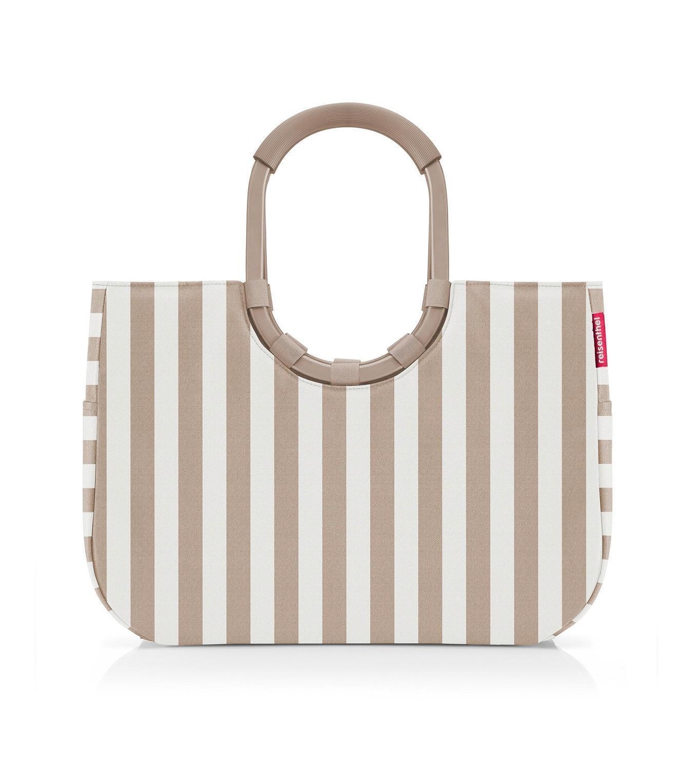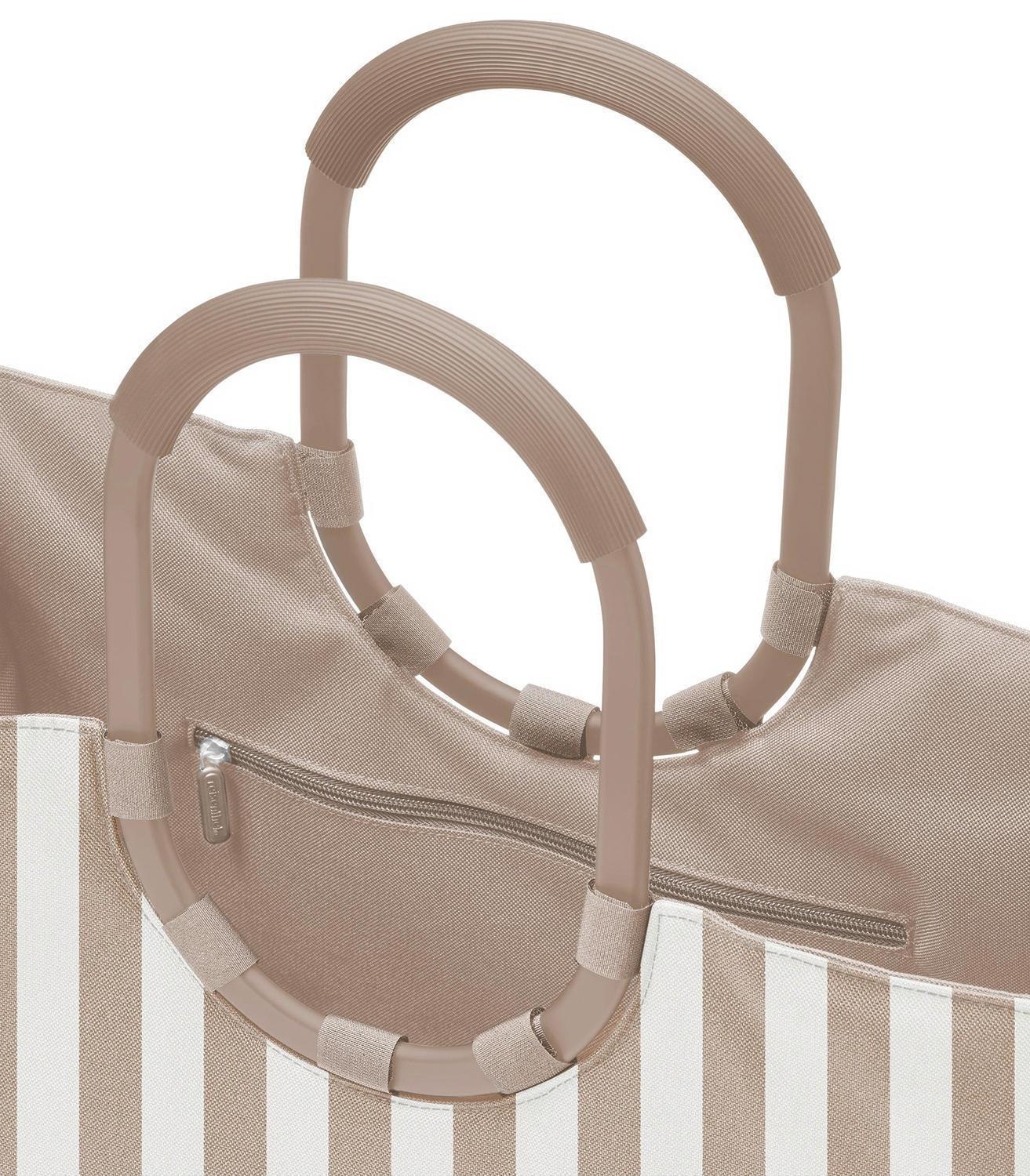 Die Einkaufstasche LOOPSHOPPER L SUMMERSTRIPES COFFEE von Reisenthel mit 25 Litern Fassungsvermögen ist aus wasserabweisendem Polyester in Braun und Weiß gefertigt. Sie verfügt über gepolsterte Aluminium-Tragegriffe in Braun, eine Innentasche mit Reißverschluss und zwei Außenstecktaschen. Die Standfüße schützen vor Feuchtigkeit. Maße: 46 x 34 cm. Mit ihren ringförmigen Tragegriffen ist sie sowohl stilvoll als auch praktisch.