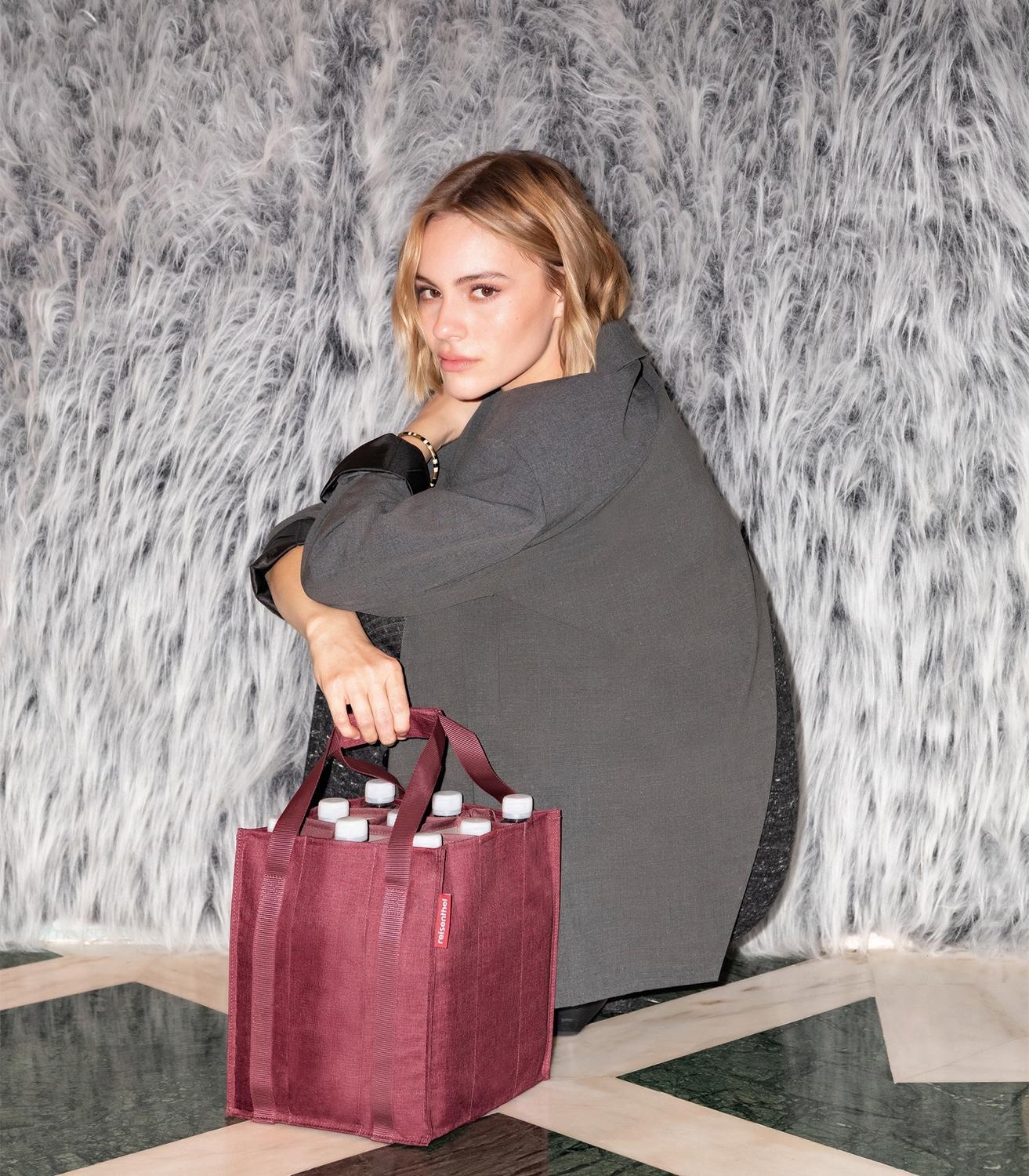 Die Flaschentasche BOTTLEBAG TWIST MAROON von Reisenthel kombiniert Stil und Funktionalität. Aus strapazierfähigem Polyestergewebe gefertigt in der Farbe Rot, bietet sie 2 Tragegriffe mit Klettband-Kopplung.