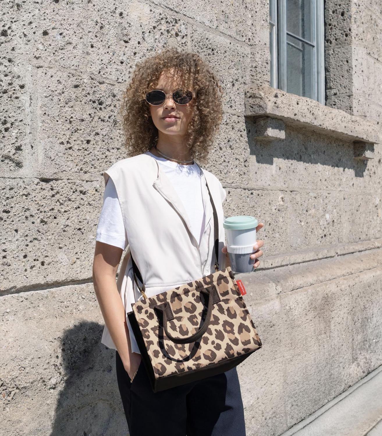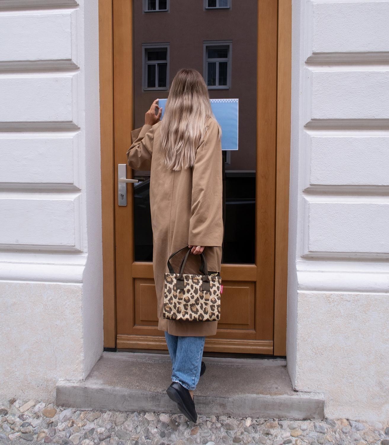 Bitte berücksichtigen Sie die Abmessungen dieser XS Ausführung. Die kleine Handtasche DAILY SHOPPER XS LEO MACCHIATO mit Leopardenmuster in Beige und Braun von Reisenthel ist eine äußerst praktische Lösung für Ihre Einkäufe, Alltag und Verabredungen die besonders auf Ihre Bedürfnisse zugeschnitten ist.