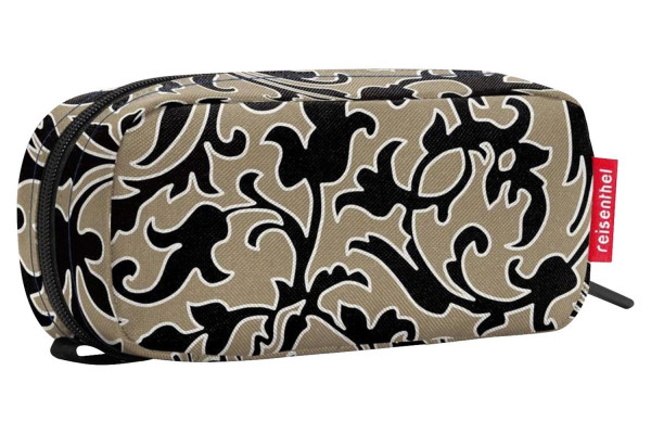 Die wasserabweisende Kosmetiktasche MULTICASE BAROQUE MARBEL von Reisenthel bietet 1,5 Liter Volumen. Hergestellt aus Polyestergewebe in Braun und Schwarz, hat sie ein inneres Hauptfach und 2 Steckfächer im Inneren. Geschlossen beträgt die Größe B 21 x H 10 x T 7 cm.