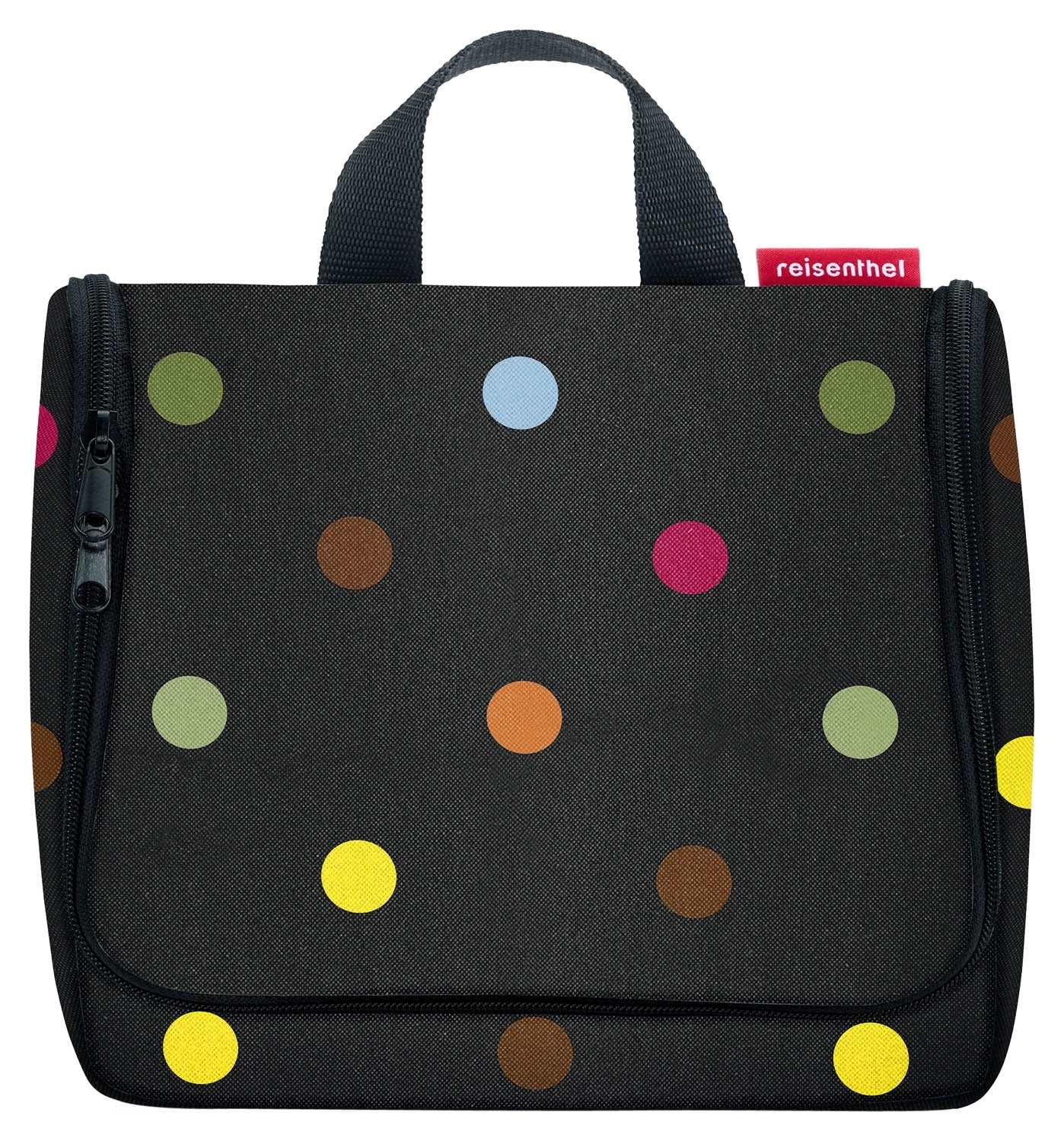 - Kosmetiktasche aus Polyestergewebe in schwarz mit mehrfarbigen Punkten