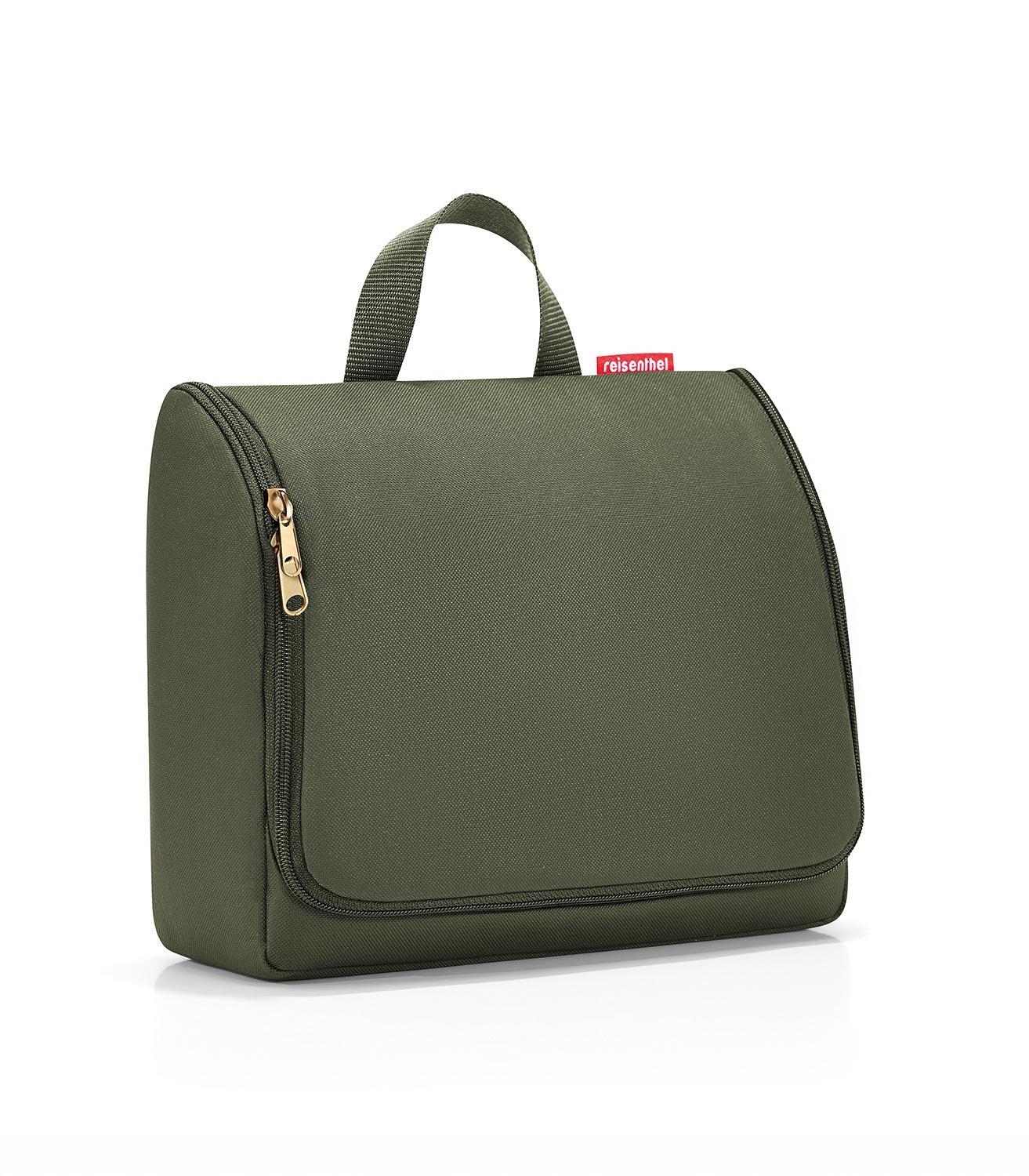 Die Kosmetiktasche TOILETBAG XL FOREST GOLD der Marke Reisenthel ist aus Polyestergewebe in Grün gefertigt mit Applikationen in Goldgelb. Sie verfügt über zwei Reißverschlüsse zum bequemen Öffnen und Schließen. Im Inneren bietet die Tasche viel Platz mit drei Reißverschlussfächern, einem großen Hauptfach, vier Steckfächern und einem Netzfach. Ein Spiegel kann mittels Klettverschluss angebracht werden, und ein Haken ermöglicht das Aufhängen der Tasche. Mit einem Fassungsvermögen von 4 Litern, einer Breite von 28 cm, einer Höhe von 23 cm und einer Tiefe von 10 cm ist sie zudem wasserabweisend.