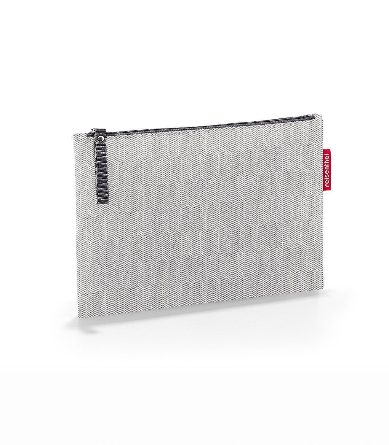Die Kosmetiktasche CASE HERRINGBONE GREY von der Marke Reisenthel besteht aus einem Polyestergewebe in Grau. Dank des wasserabweisenden Außenmaterials sind die Inhalte gut geschützt. Zum Verschluss dient ein Reißverschluss, der mit einer langen Zughilfe versehen ist. Im Inneren ist die Tasche für eine sichere Aufbewahrung von Gegenständen gefüttert. Bei einer Breite von 24 cm und einer Höhe von 17 cm weist die Kosmetiktasche eine geringe Tiefe von lediglich 1 cm auf.