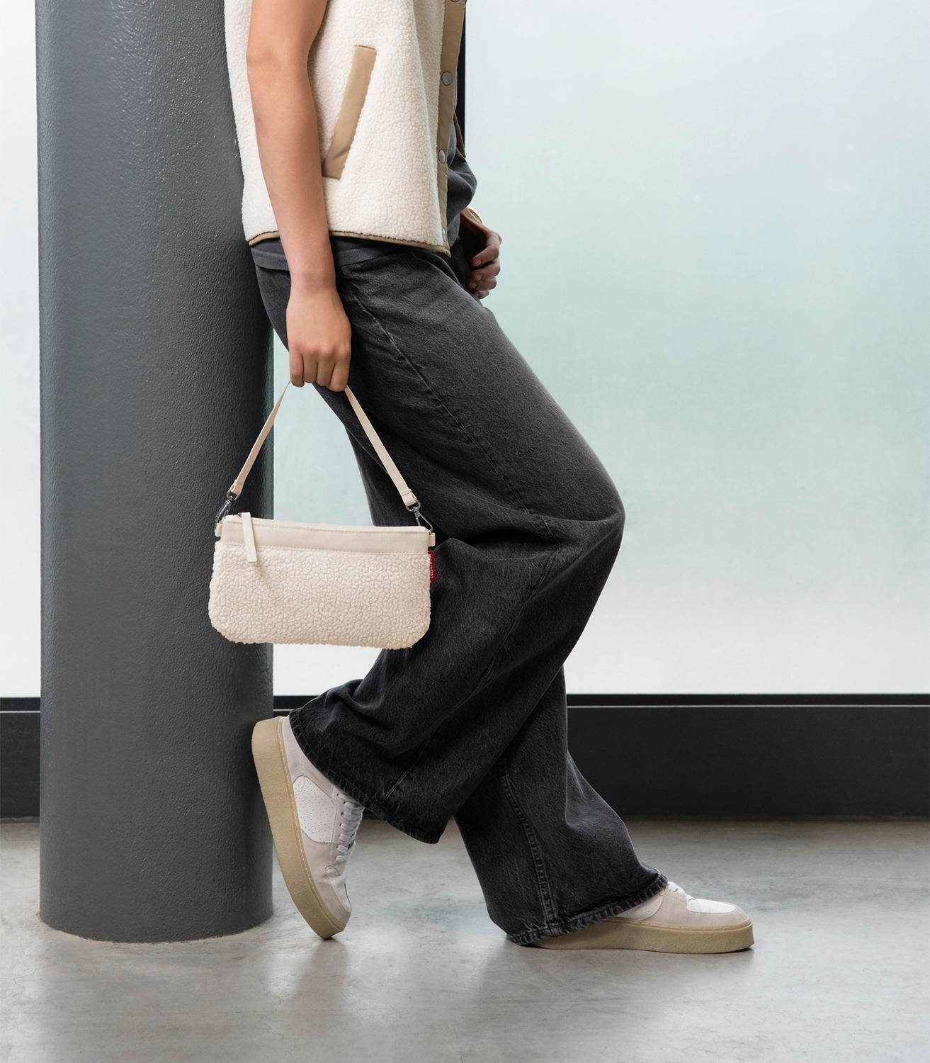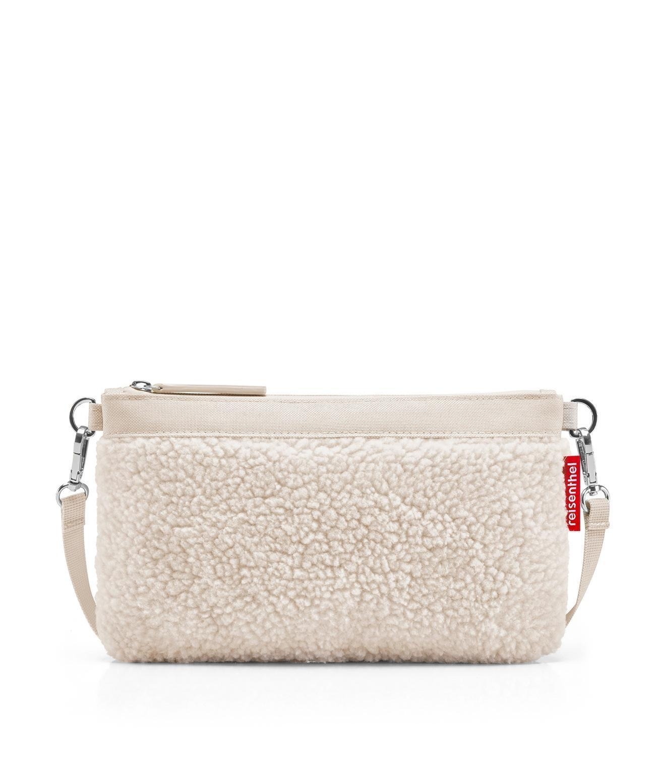Die kleine Kosmetiktasche MINI POUCH der Marke Reisenthel besteht aus recyceltem Polyester in Sandgrau, wobei der Außenbezug aus Teddystoff gefertigt ist. Ein Reißverschluss verschließt das gefütterte Hauptfach, das zur Aufbewahrung dient. Für erhöhte Flexibilität ist die Tasche mit einem abnehmbaren Schultergurt ausgestattet. Bei einer Breite von 26 cm und einer Höhe von 15 cm weist die Kosmetiktasche eine geringe Tiefe von lediglich 1 cm auf.