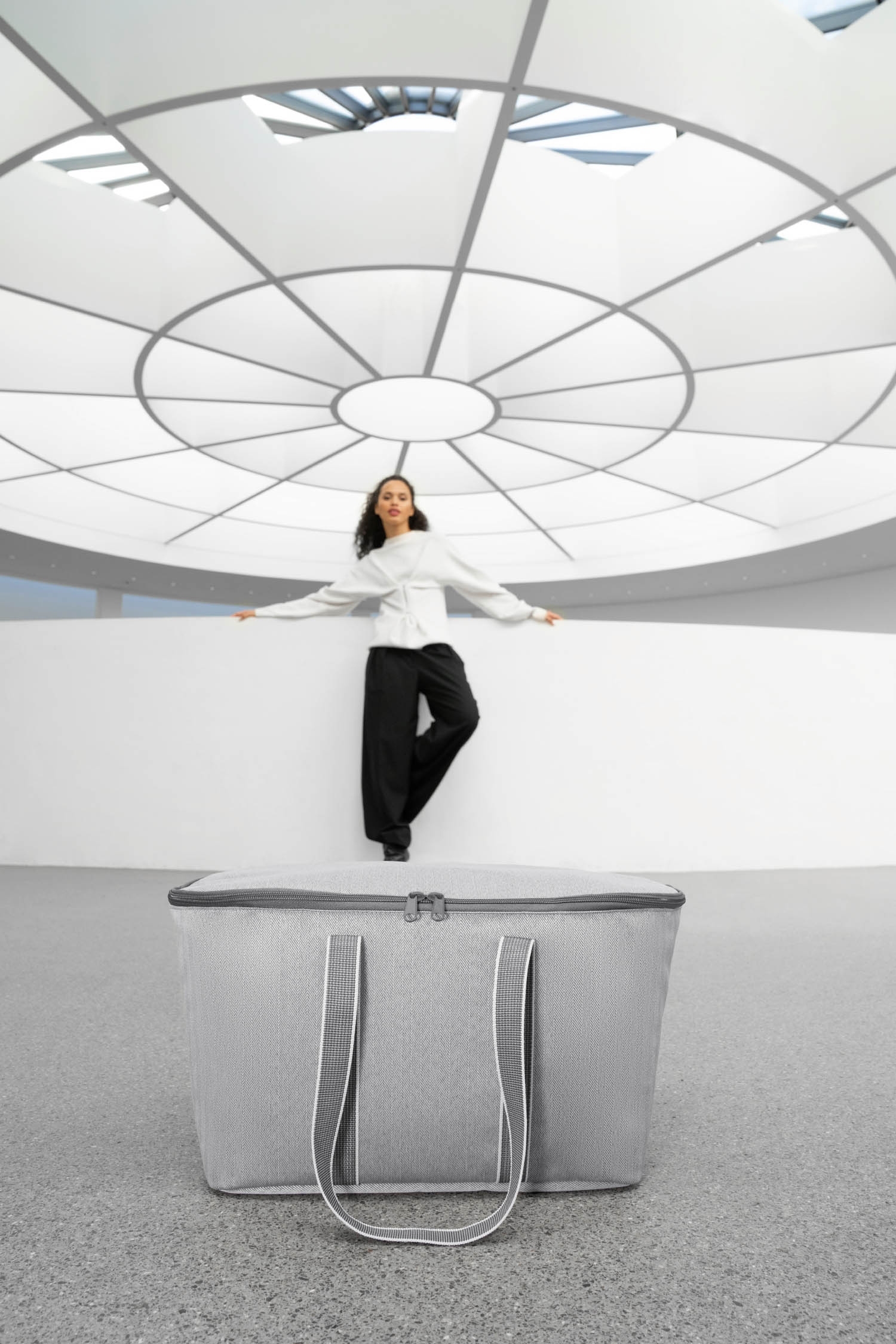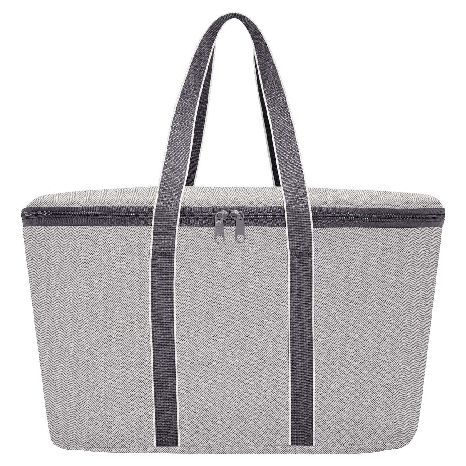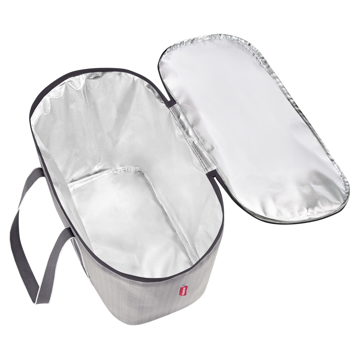 Die Kühltasche COOLERBAG HERRINGBONE GREY von Reisenthel in grau und schwarz bietet mit 20 Litern Fassungsvermögen ausreichend Platz. Das Polyester-Gewebe mit Aluminiumfolien-Thermobeschichtung hält Lebensmittel länger frisch und kühl. Die stabile Konstruktion mit dichtschließendem Reißverschluss und zwei Tragegriffen sorgt für einfache Handhabung. Mit wasserabweisendem Boden und pflegeleichtem Innenfutter ist sie ideal für unterwegs.