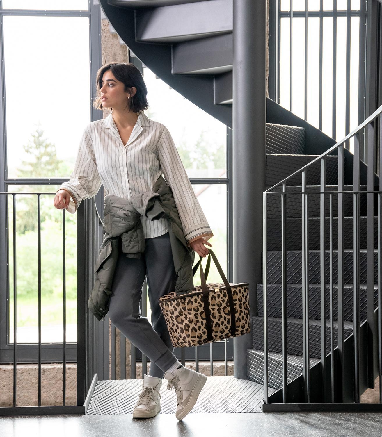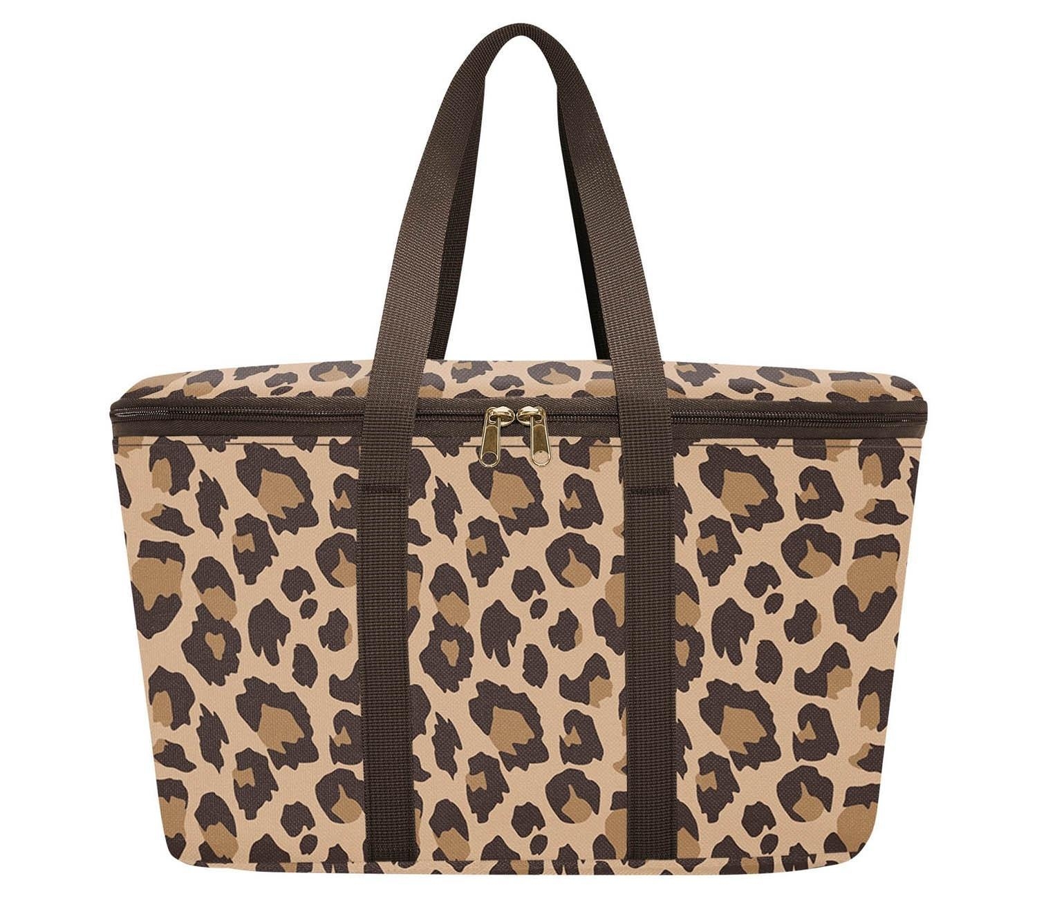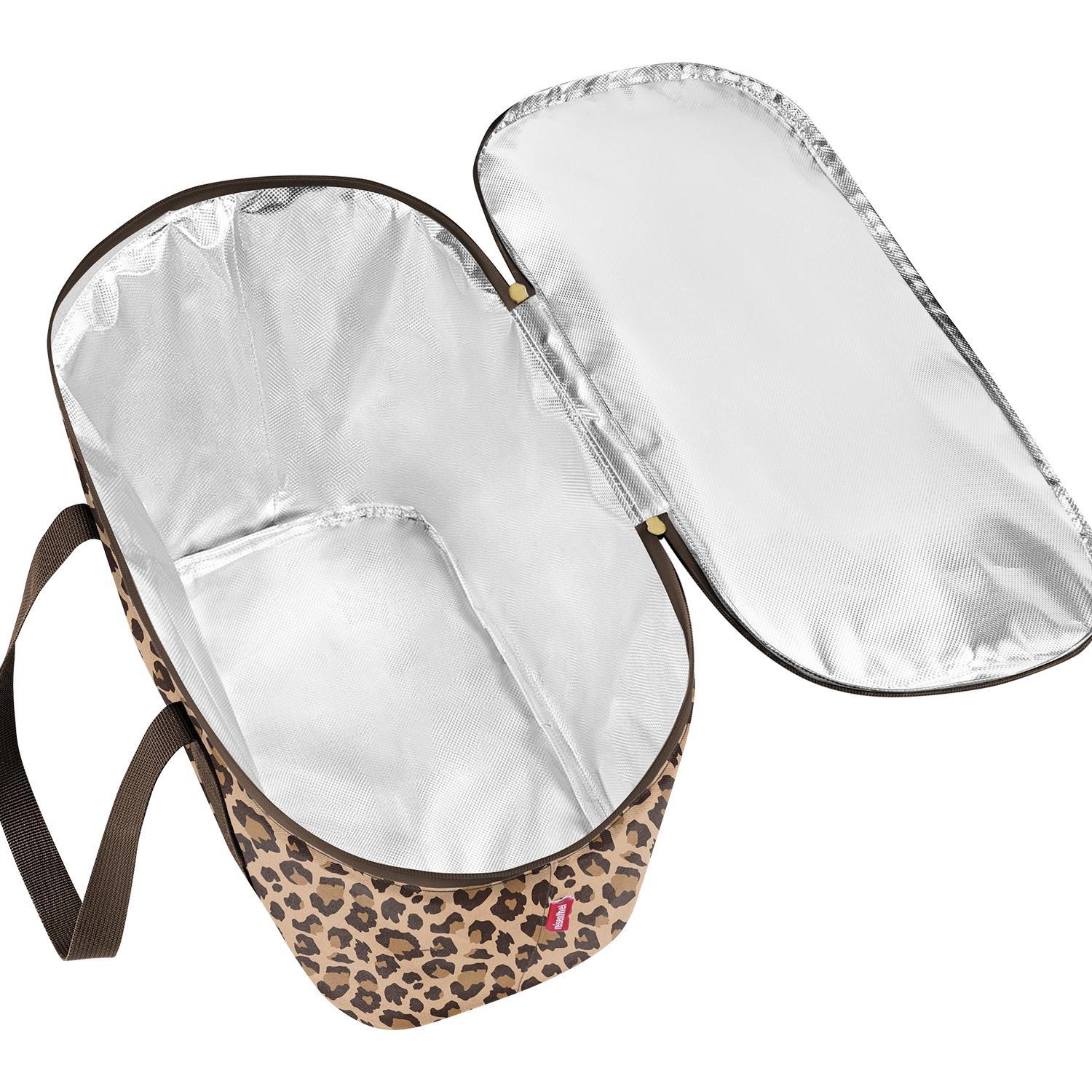 Die Kühltasche COOLERBAG LEO MACCHIATO von Reisenthel mit Leopardenmuster in braun, beige und goldgelb bietet mit 20 Litern Fassungsvermögen ausreichend Platz. Das Polyester-Gewebe mit Aluminiumfolien-Thermobeschichtung hält Lebensmittel länger frisch und kühl. Die stabile Konstruktion mit dichtschließendem Reißverschluss und zwei Tragegriffen sorgt für einfache Handhabung. Mit wasserabweisendem Boden und pflegeleichtem Innenfutter ist sie ideal für unterwegs.