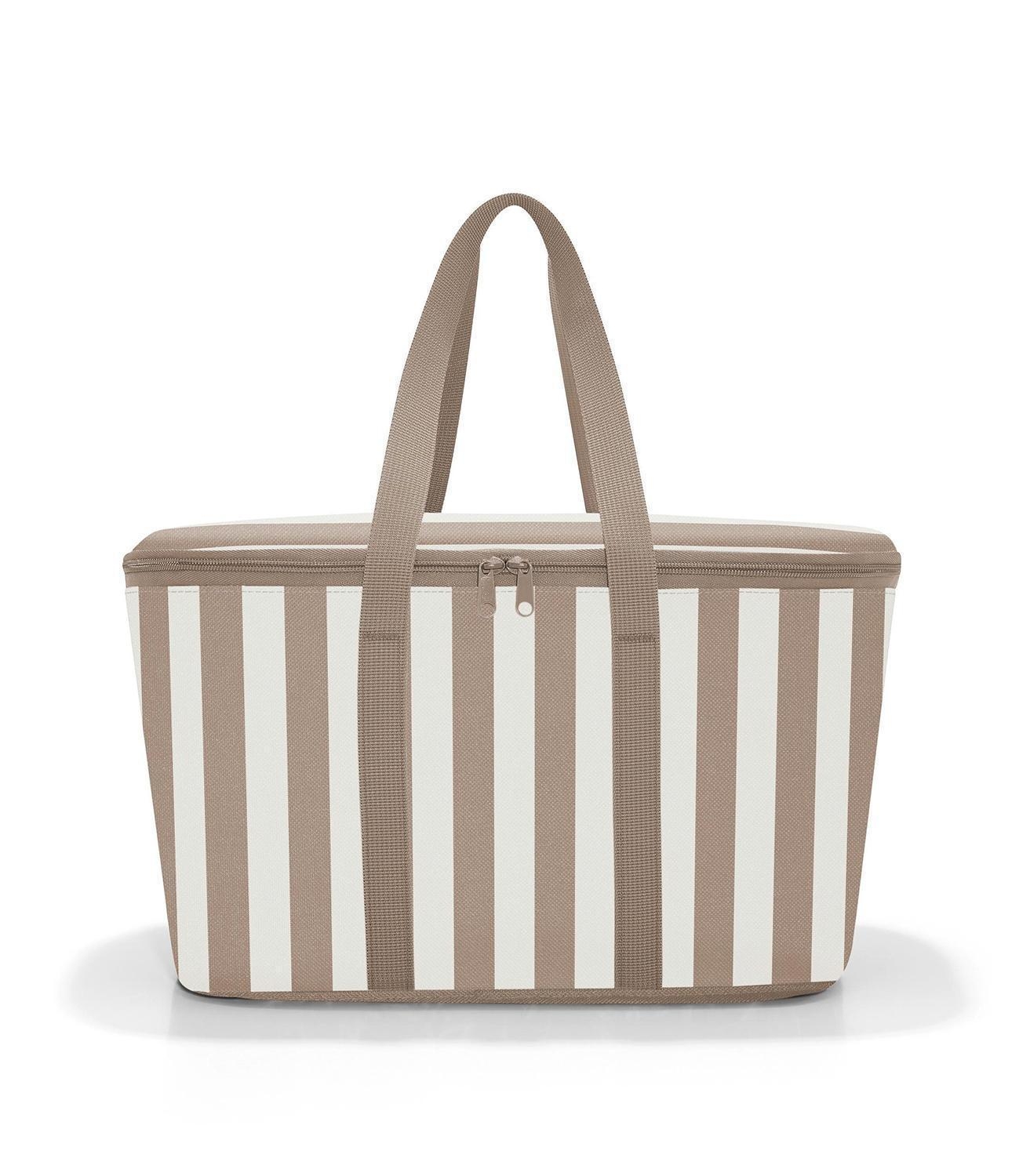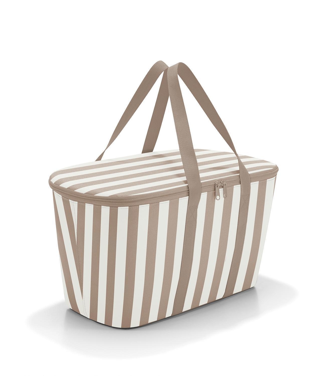 Die Kühltasche COOLERBAG SUMMERSTRIPES COFFEE von Reisenthel in Braun und Weiß bietet mit 20 Litern Fassungsvermögen ausreichend Platz. Das Polyester-Gewebe mit Aluminiumfolien-Thermobeschichtung hält Lebensmittel länger frisch und kühl. Die stabile Konstruktion mit dichtschließendem Reißverschluss und zwei Tragegriffen sorgt für einfache Handhabung. Mit wasserabweisendem Boden und pflegeleichtem Innenfutter ist sie ideal für unterwegs.