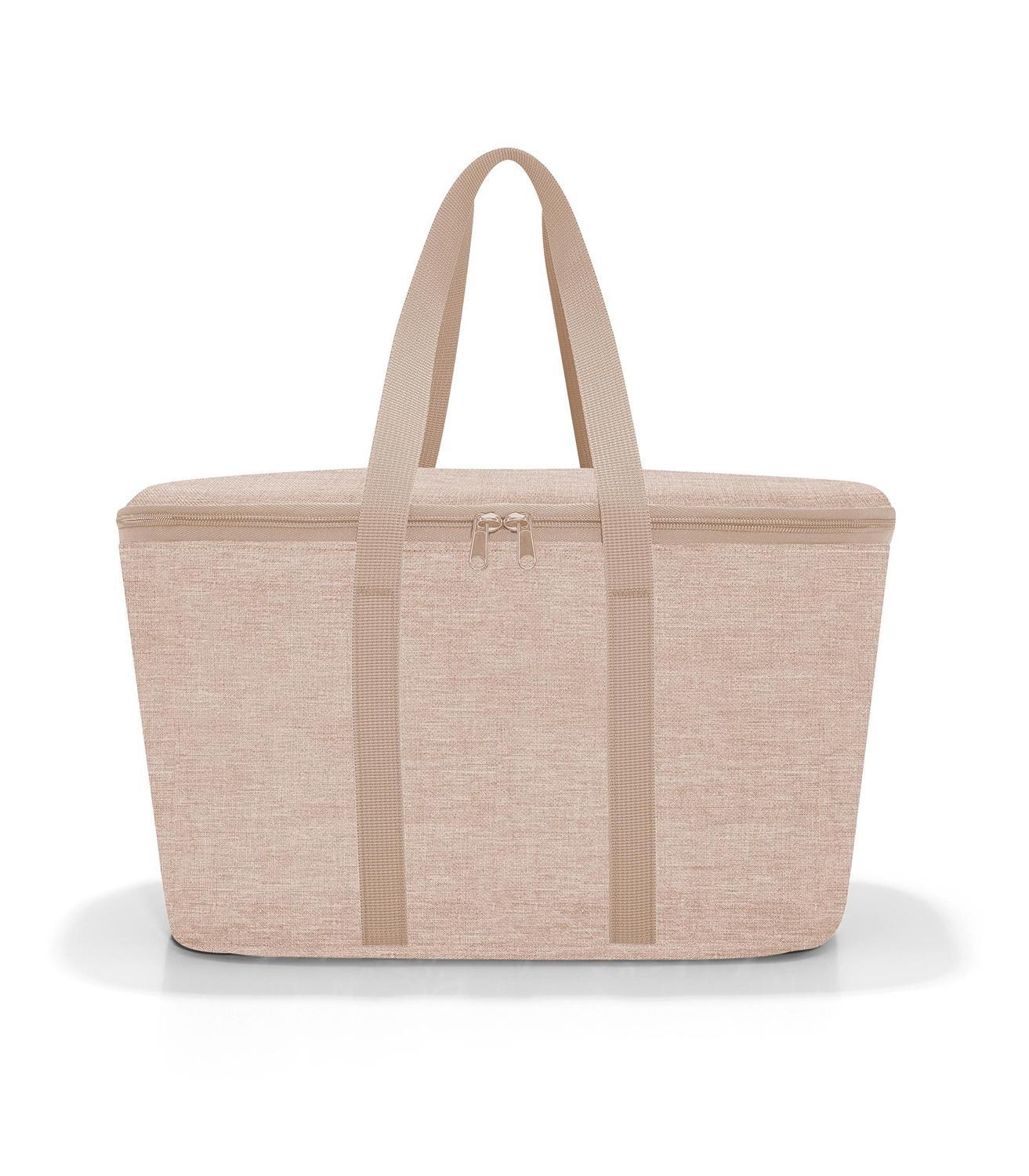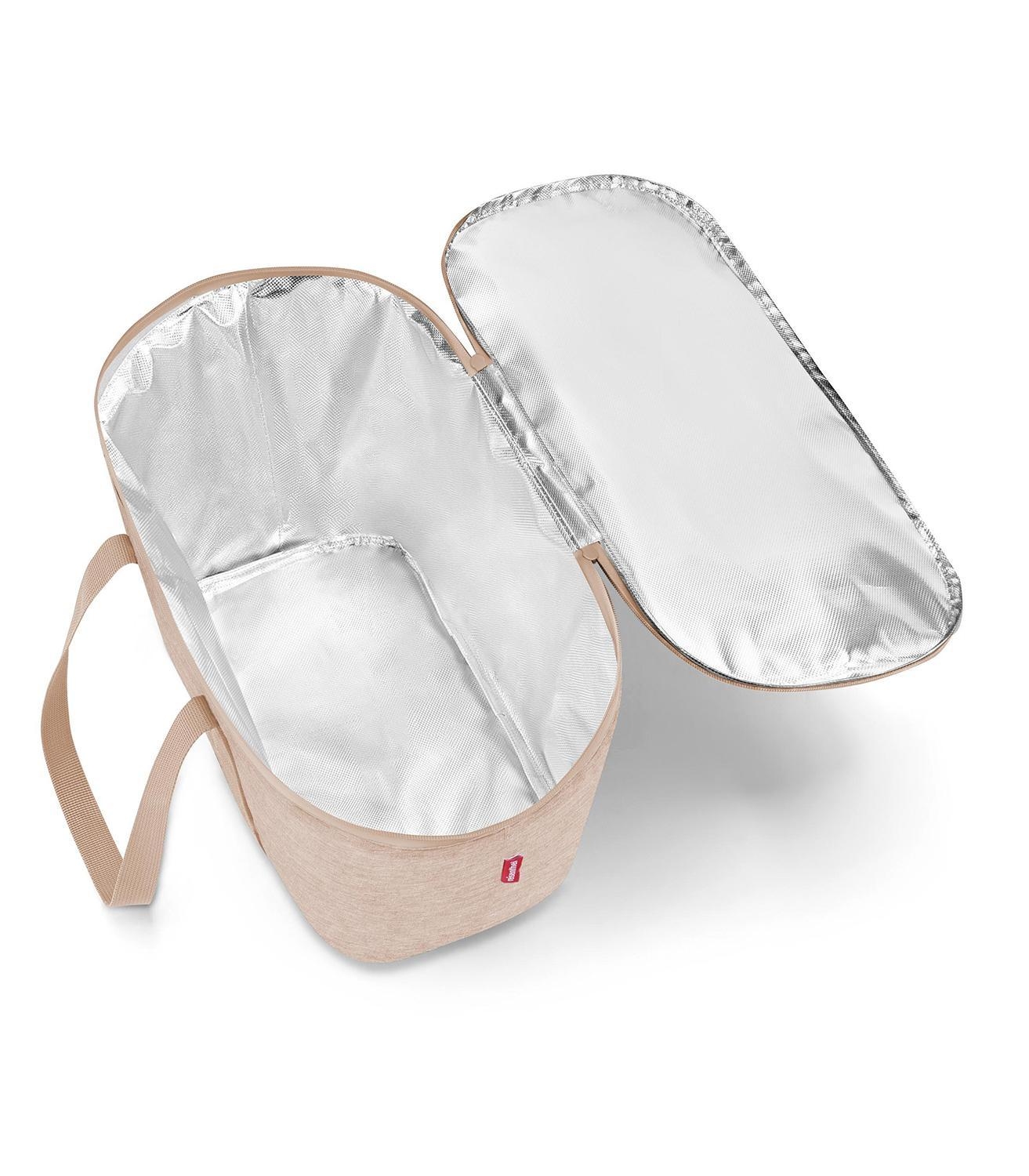 Die Kühltasche COOLERBAG TWIST COFFEE von Reisenthel in Beige bietet mit 20 Litern Fassungsvermögen ausreichend Platz. Das Polyester-Gewebe mit Aluminiumfolien-Thermobeschichtung hält Lebensmittel länger frisch und kühl. Die stabile Konstruktion mit dichtschließendem Reißverschluss und zwei Tragegriffen sorgt für einfache Handhabung. Mit wasserabweisendem Boden und pflegeleichtem Innenfutter ist sie ideal für unterwegs.