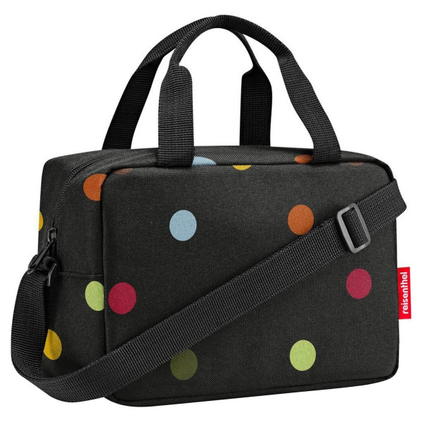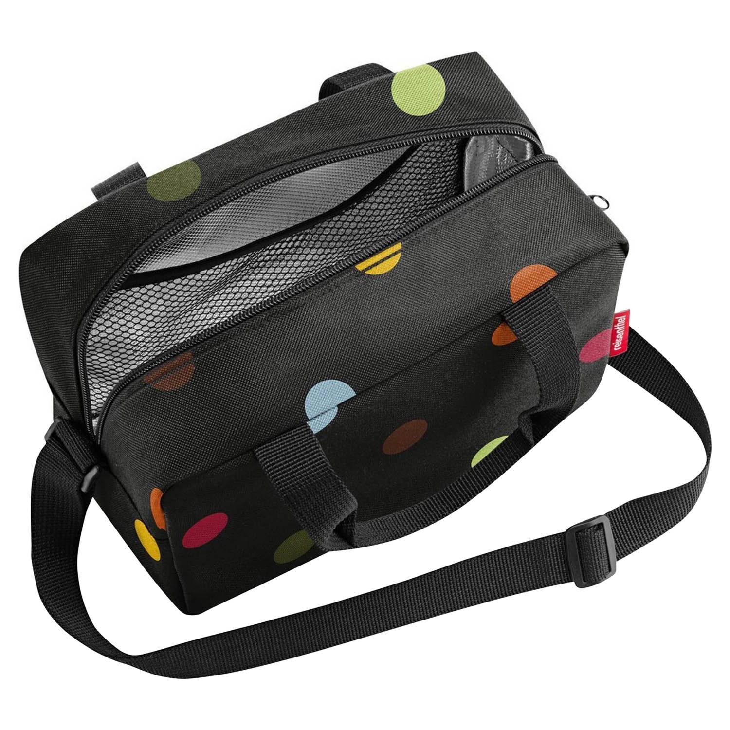 Die schwarze Kühltasche COOLERBAG TO-GO DOTS von Reisenthel mit bunten Punkten bietet mit 3 Litern Fassungsvermögen ausreichend Platz. Das Polyester-Gewebe mit Aluminiumfolien-Thermobeschichtung hält Lebensmittel länger frisch und kühl. Die stabile Konstruktion mit dichtschließendem Reißverschluss und zwei Tragegriffen sorgt für einfache Handhabung. Mit wasserabweisendem Boden und pflegeleichtem Innenfutter ist sie ideal für unterwegs.