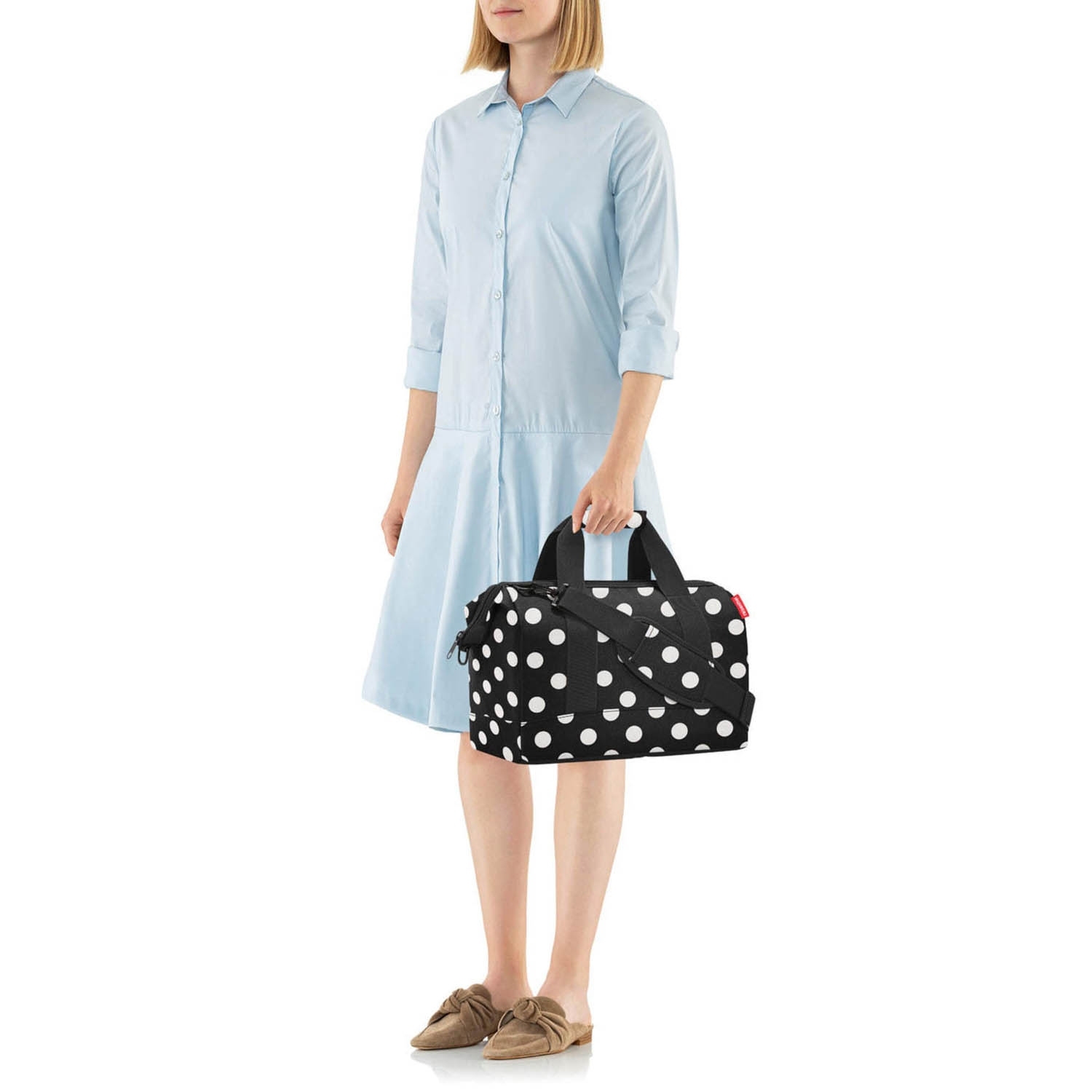 Diese vielseitige Reisetasche 18 Liter ALLROUNDER M DOTS WHITE von Reisenthel in Schwarz kombiniert Funktionalität mit stilvollem Design. Aus hochwertigen Materialien gefertigt, garantiert dieses Produkt Langlebigkeit und Zuverlässigkeit bei der täglichen Nutzung.Die durchdachte Aufteilung bietet ausreichend Stauraum