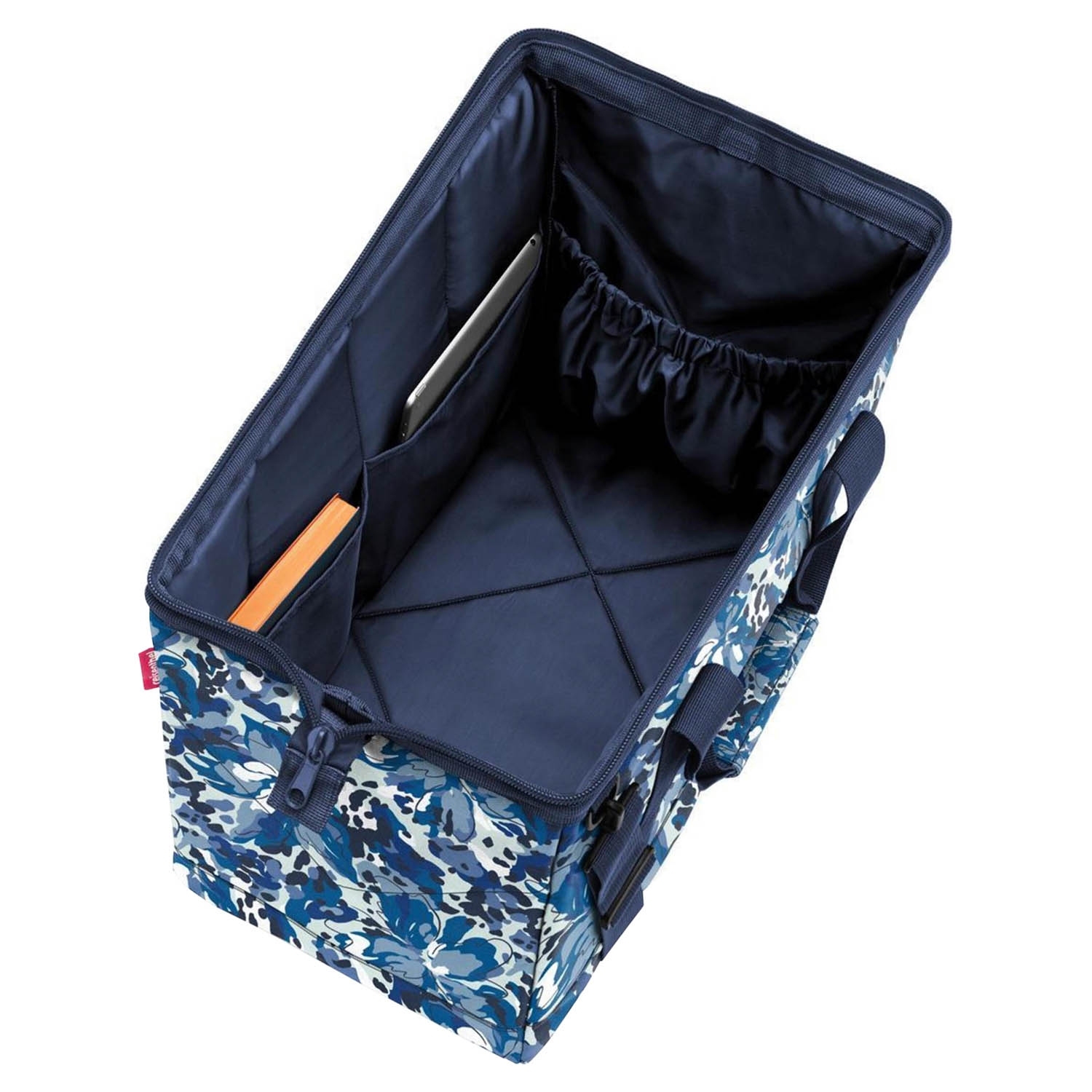 Die Reisetasche ALLROUNDER L FLORA BLUE von Reisenthel in Blau und Weiß ist aus Polyestergewebe gefertigt und bietet ein Volumen von 30 Litern. Sie hat einen abnehmbaren Schultergurt und 2 vernähte Tragegriffe, sowie gepolsterte Seitenwände und Boden. Im Inneren gibt es 6 Steckfächer und die Öffnung ist mit einem eingearbeiteten Metallbügel versehen. Das hochwertige Polyestergewebe ist wasserabweisend. Die Tasche hat eine komfortabel gepolsterte Schulterauflage und 2 Tragehenkel mit Griffpolster.