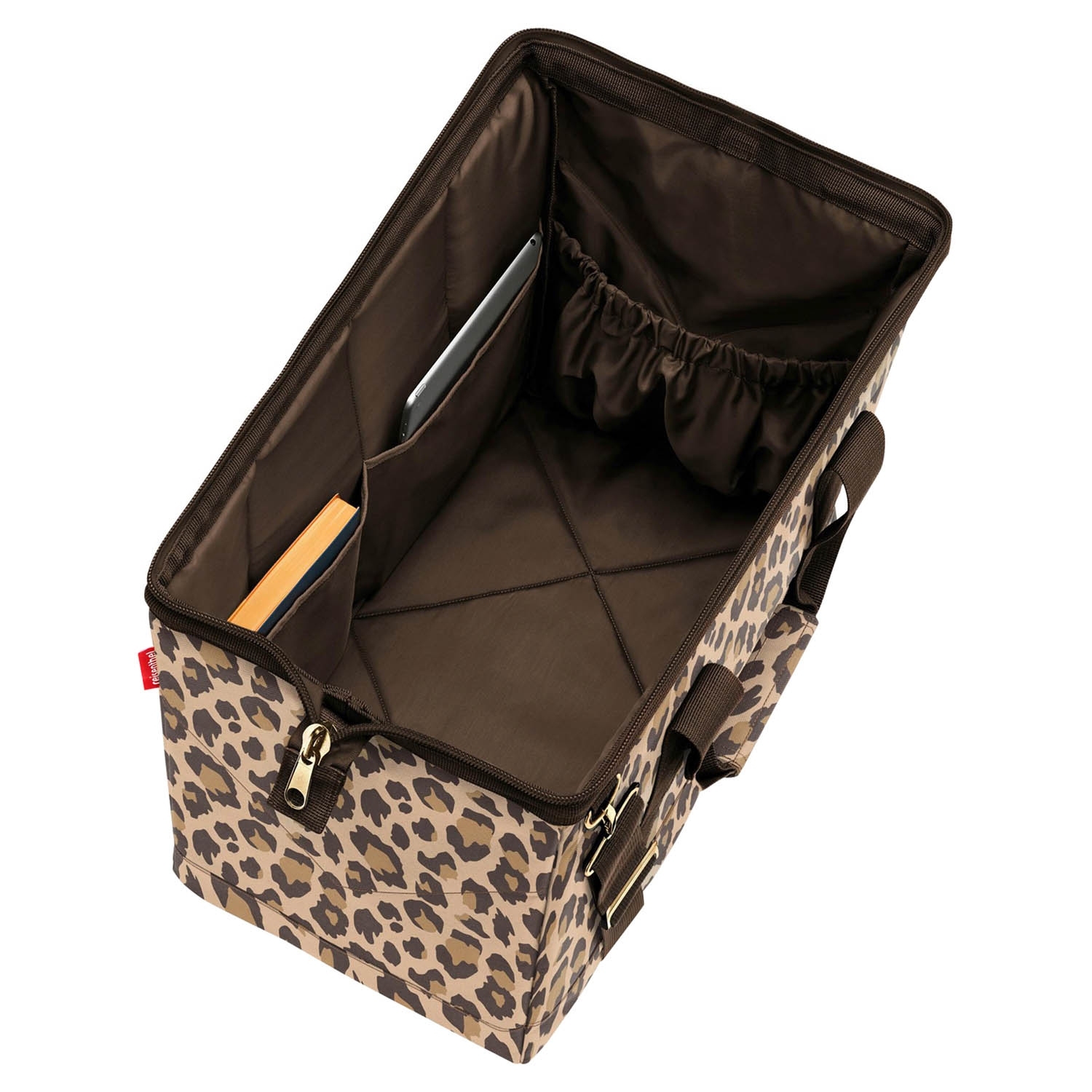 Die Reisetasche ALLROUNDER L LEO MACCHIATO von Reisenthel in Beige und Braun ist aus Polyestergewebe gefertigt und bietet ein Volumen von 30 Litern. Sie hat einen abnehmbaren Schultergurt und 2 vernähte Tragegriffe, sowie gepolsterte Seitenwände und Boden. Im Inneren gibt es 6 Steckfächer und die Öffnung ist mit einem eingearbeiteten Metallbügel versehen. Das hochwertige Polyestergewebe ist wasserabweisend. Die ALLROUNDER L LEO MACCHIATO hat eine komfortabel gepolsterte Schulterauflage und 2 Tragehenkel mit Griffpolster.