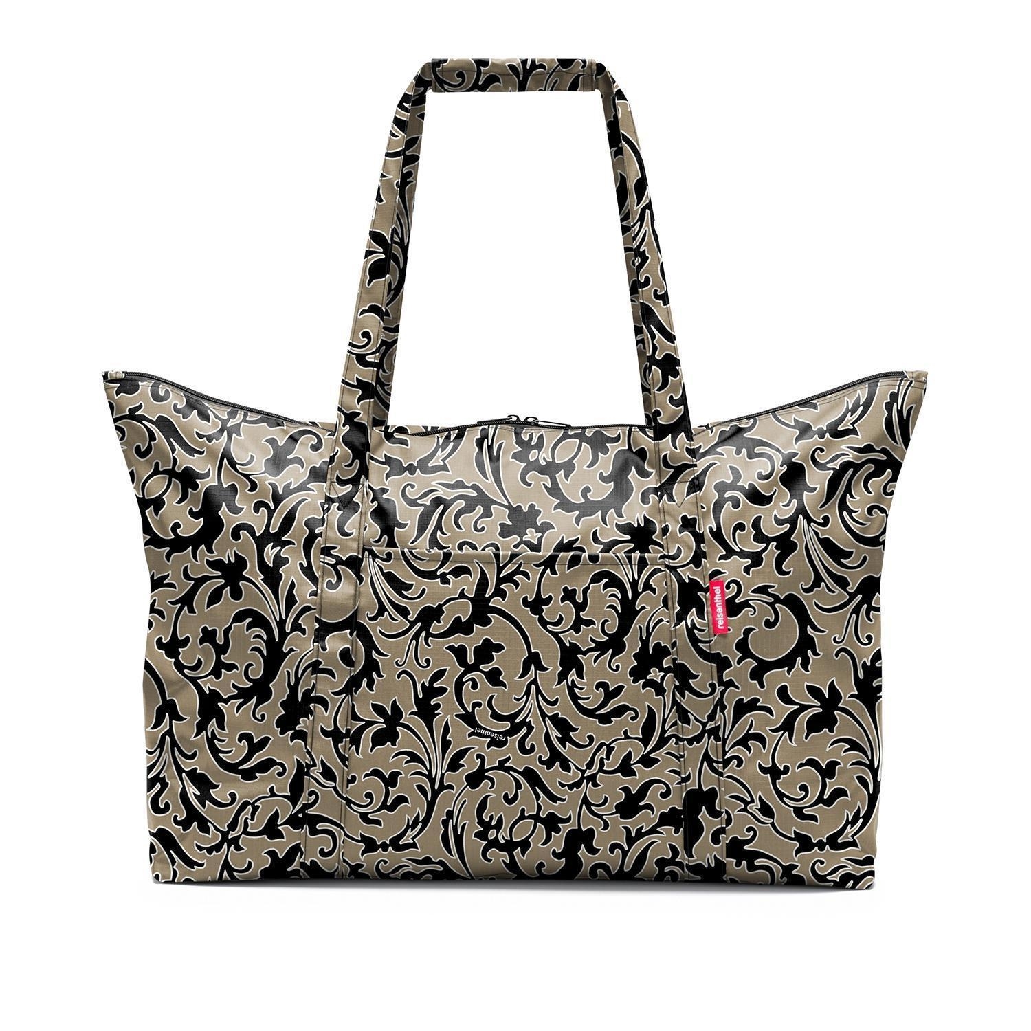Die Reisetasche MINI MAXI TRAVELBAG BAROQUE MARBLE der Marke Reisenthel ist aus wasserabweisendem, recyceltem Polyestergewebe gefertigt und in den Farben Braun und Schwarz ausgeführt. Sie verfügt über ein Fassungsvermögen von 30 Litern. Zwei vernähte Tragegriffe mit Klettgriff ermöglichen den Transport. An der Außenseite befindet sich ein Steckfach. Die Tasche ist mit einer Extratasche ausgestattet, die ein platzsparendes Verstauen ermöglicht. Diese verfügt über einen Karabinerverschluss. Die Maße der Reisetasche betragen 65 Zentimeter in der Breite, 41 Zentimeter in der Höhe und 26 Zentimeter in der Tiefe.