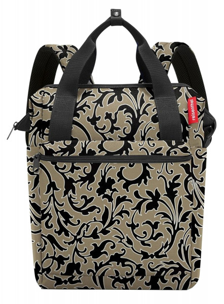 Der Rucksack ALLROUNDER R BAROQUE MARBLE von Reisenthel überzeugt mit seinem funktionalen Design und einem Fassungsvermögen von 12 Litern. Gefertigt aus Polyestergewebe in Braun und Schwarz, bietet er verstellbare Schultergurte und zwei vernähte Tragegriffe für vielseitige Tragemöglichkeiten. Praktisch ist die Stecklasche zur Befestigung an Trolley-Griffen. Zudem verfügt er über ein äußeres Fach mit Reißverschluss und zwei Steckfächern sowie ein inneres Fach mit Reißverschluss und drei Steckfächern. Mit den Maßen von 31 cm Breite, 39 cm Höhe und 17 cm Tiefe ist dieser Rucksack ideal für den Alltag und Reisen.