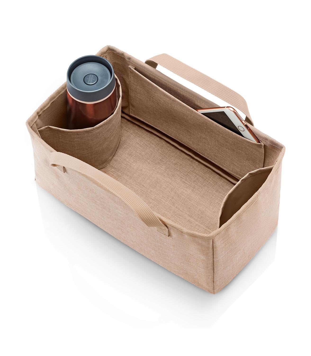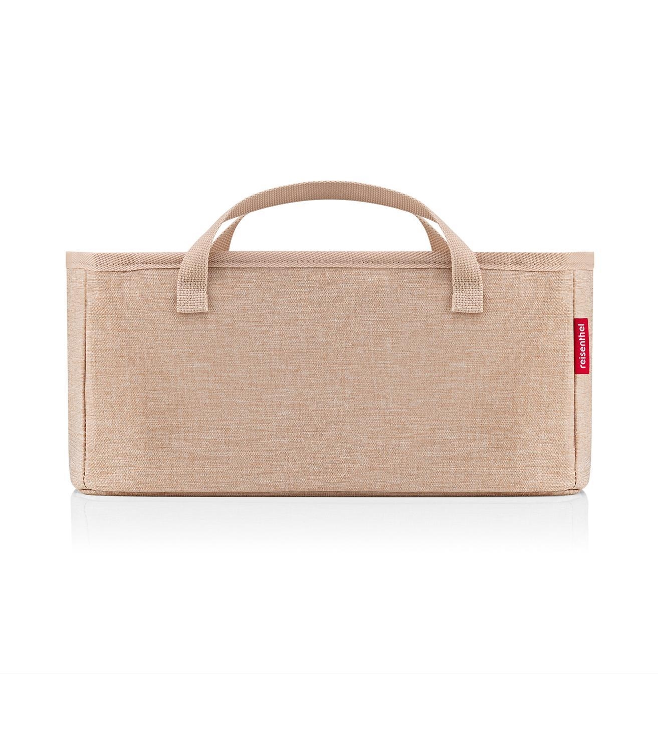 Der Taschen-Organizer ORGANIZER TWIST COFFEE der Marke Reisenthel ist aus beigem Polyester gefertigt und besteht zu 100 % aus recyceltem Material. Diese Innentasche verfügt über zwei vernähte Tragegriffe und weist wasserabweisende Eigenschaften auf, die den Inhalt vor äußeren Einflüssen schützen. Die Aufteilung umfasst ein Hauptfach, ein Reißverschlussfach sowie ein kleines und zwei größere Steckfächer, was eine strukturierte Aufbewahrung ermöglicht. Mit einem Fassungsvermögen von 8 Litern sowie Abmessungen von 36 cm in der Breite, 16 cm in der Höhe und 18 cm in der Tiefe ist das Modell passgenau für diverse Handtaschen, Einkaufstaschen und Einkaufskörbe konzipiert.