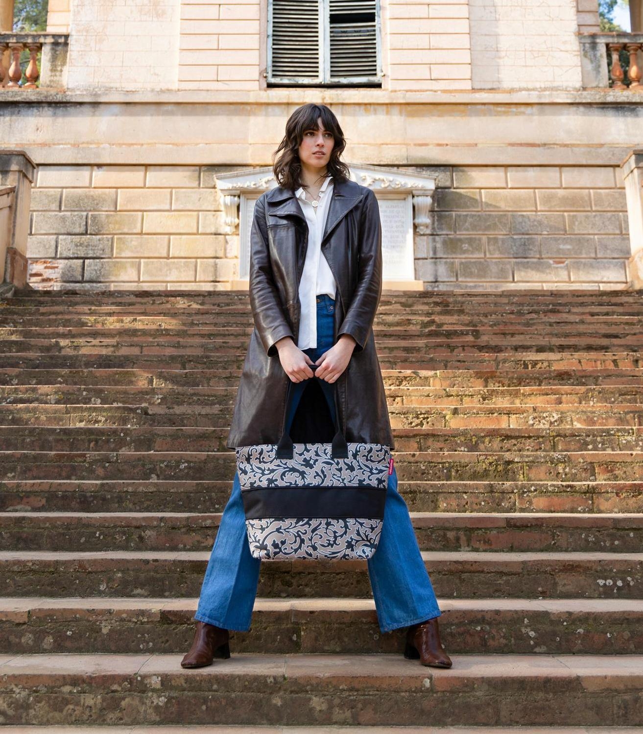 - Tragetasche aus Polyestergewebe in Braun und Schwarz