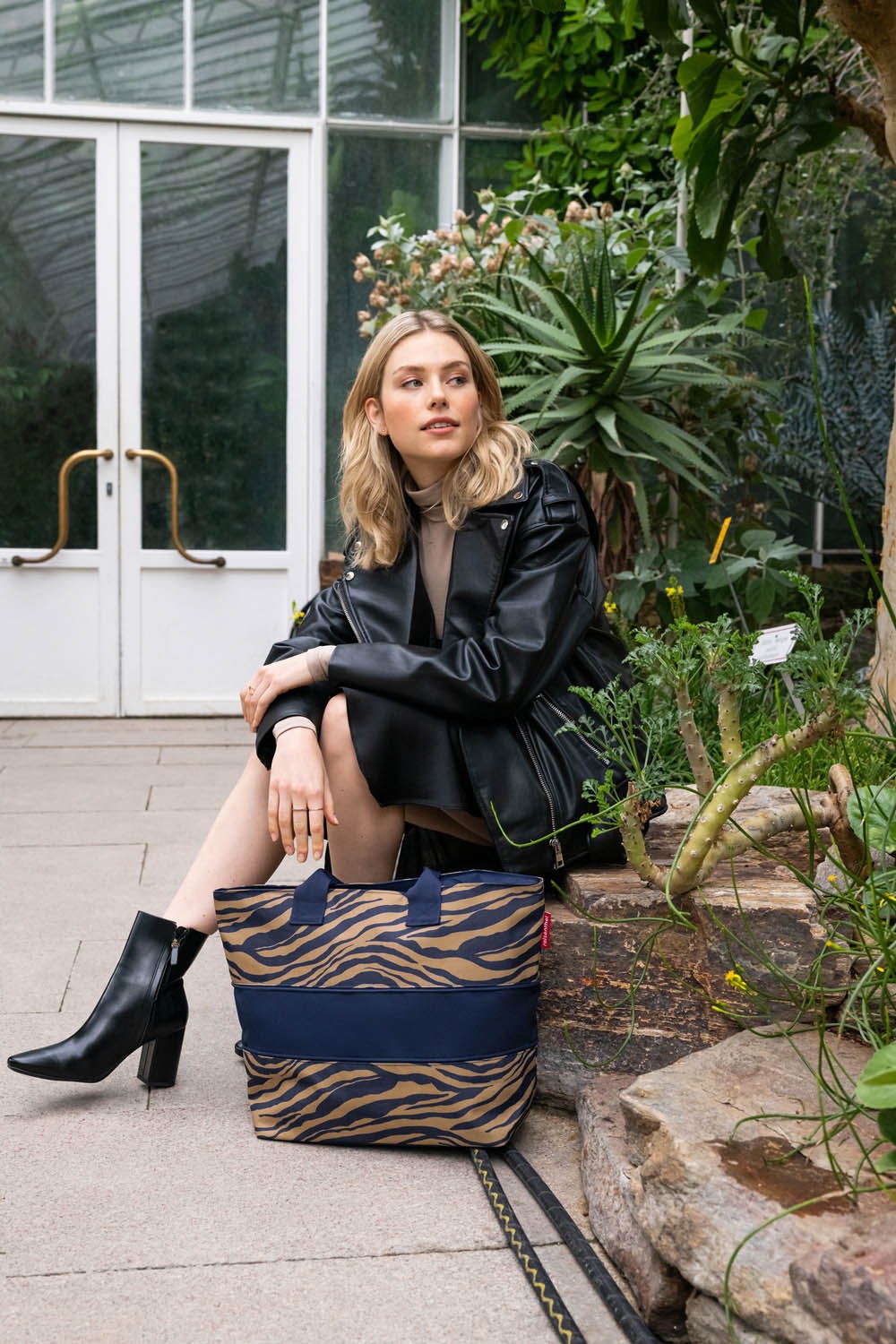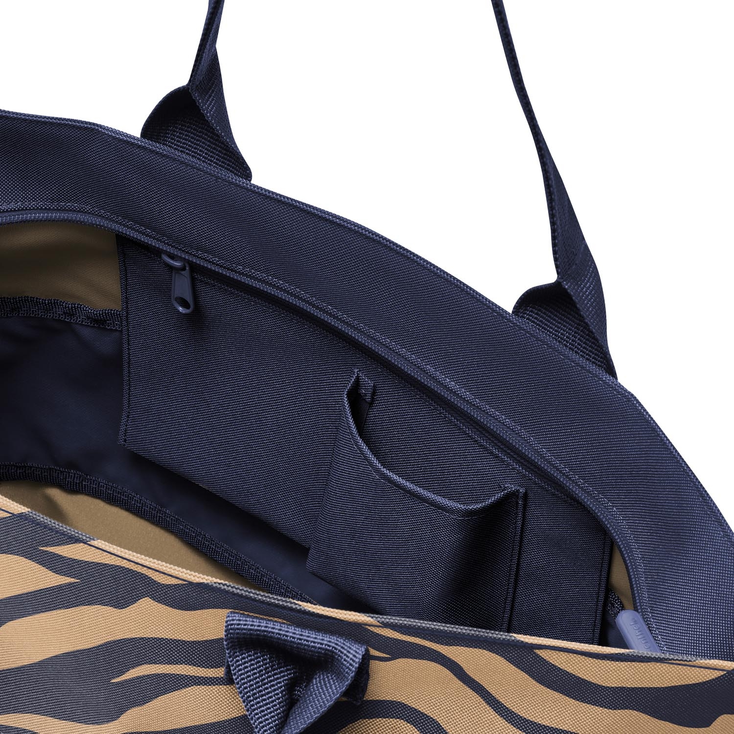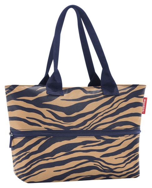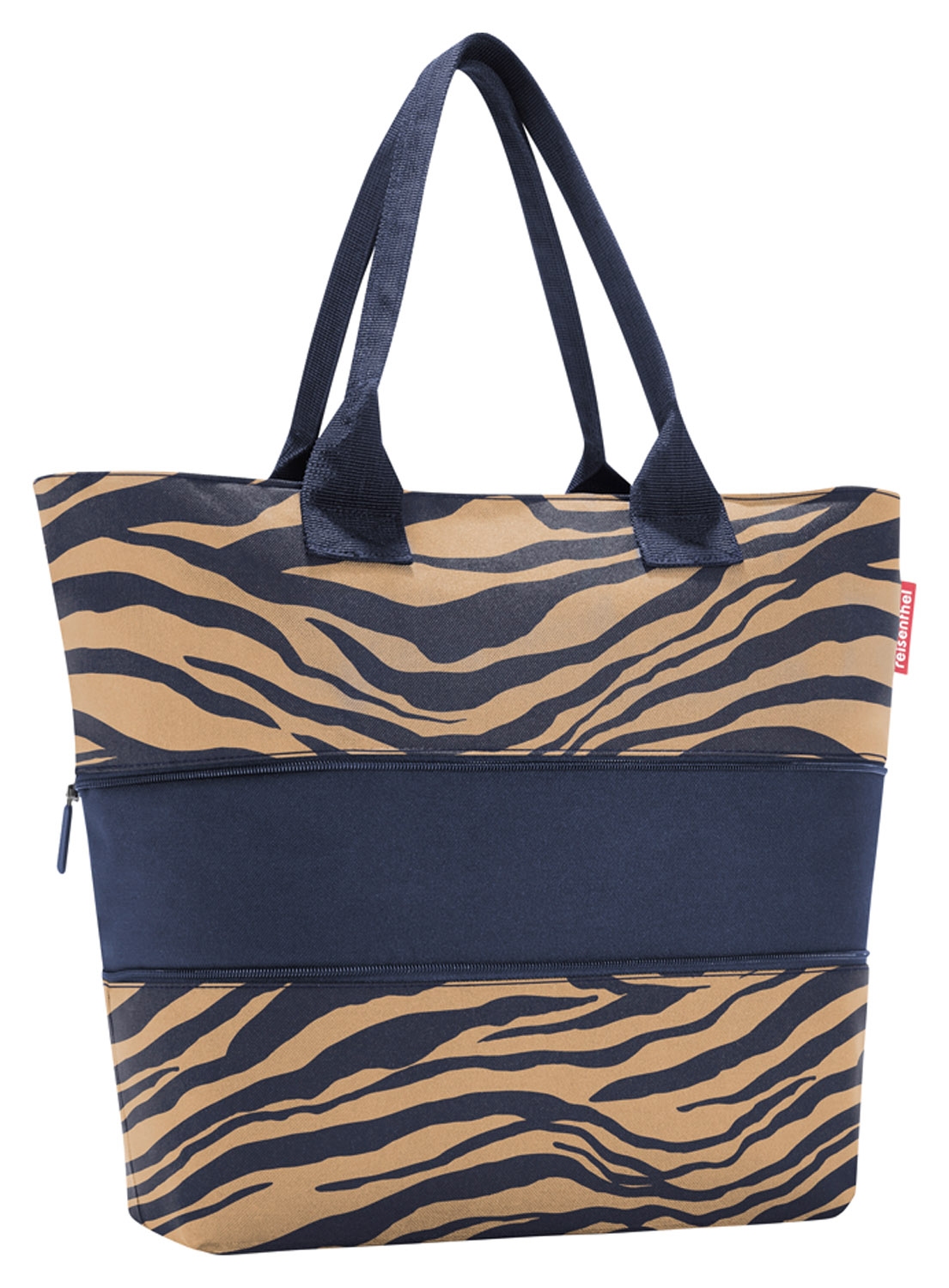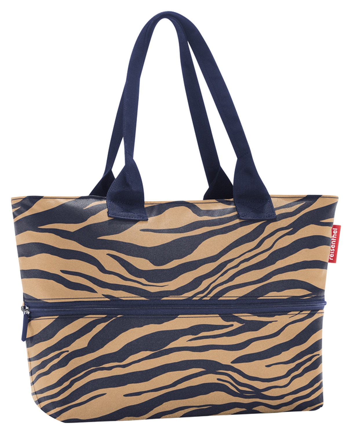 - Tragetasche aus Polyestergewebe mit Zebramuster in braun und blau