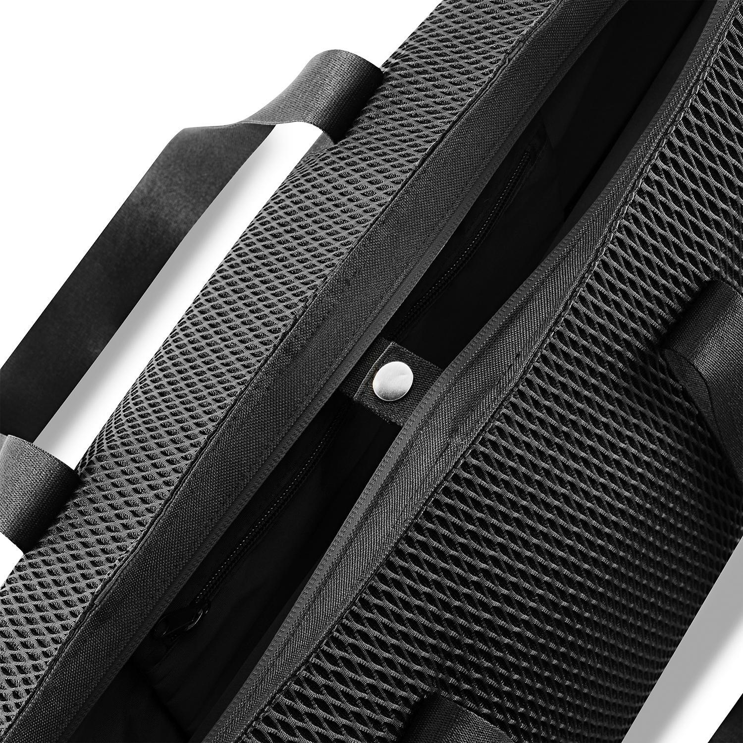 Zwei fest vernähte Tragegriffe ermöglichen einen komfortablen Transport. Das wasserabweisende Material schützt den Inhalt vor Feuchtigkeit. Durch die Verwendung besonders leichter Materialien weist die Tasche ein geringes Eigengewicht auf. Die Abmessungen betragen 46 cm in der Breite, 40 cm in der Höhe und 20 cm in der Tiefe.