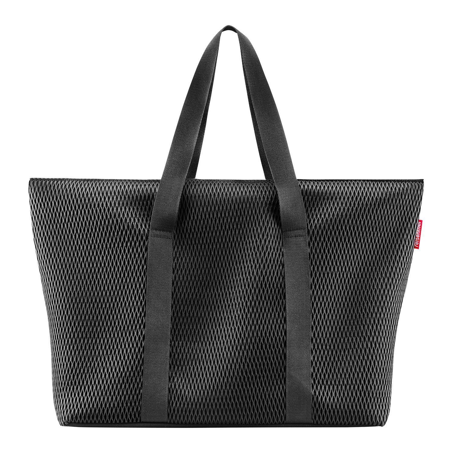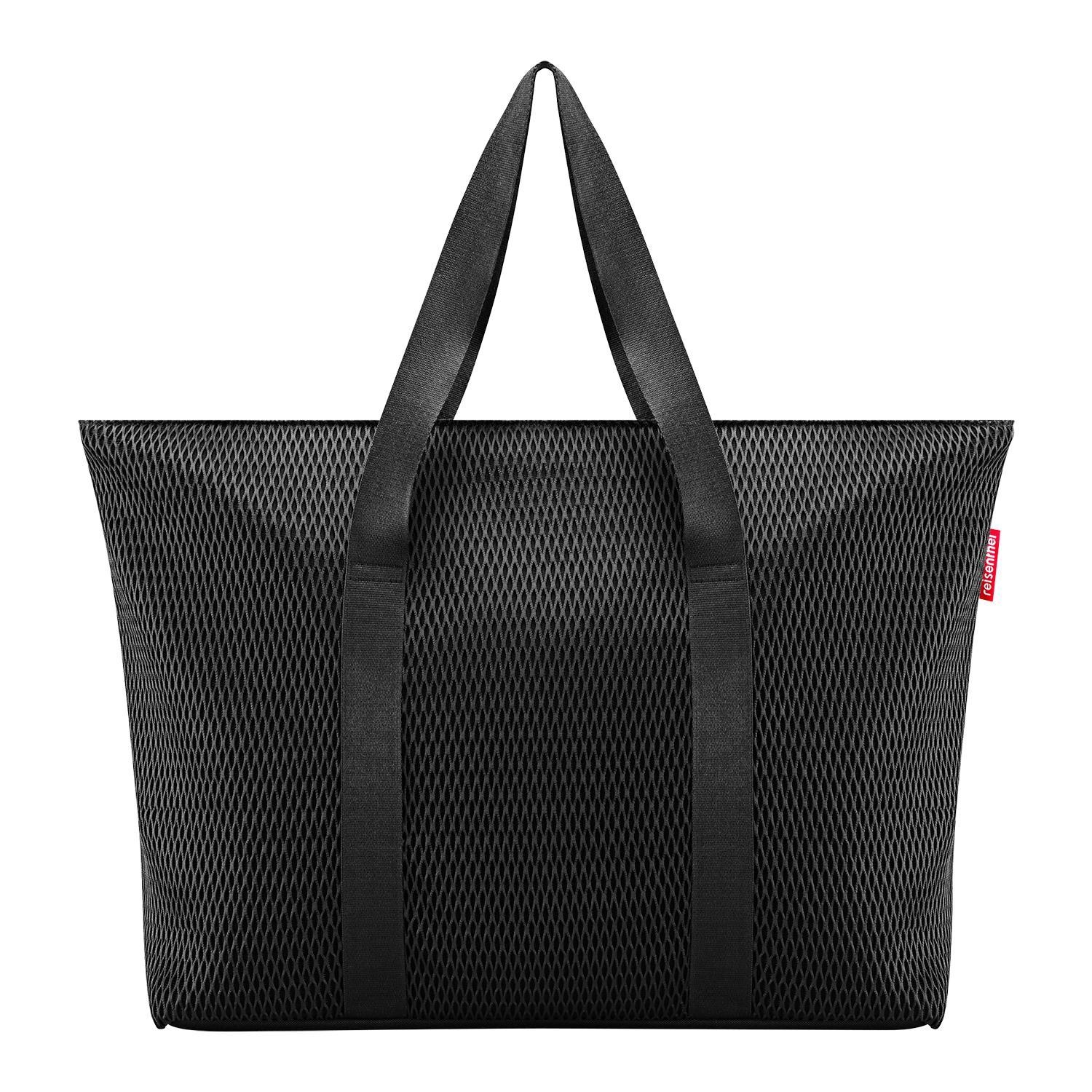 Die Tragetasche EXTRALITE SHOPPER L MESH BLACK der Marke Reisenthel ist aus schwarzem Mesh-Gewebe und Polyester gefertigt. Sie verfügt über ein Fassungsvermögen von 35 Litern und ist mit einem Hauptfach ausgestattet, das sich über einen 2-Wege-Reißverschluss öffnen und schließen lässt. Im Inneren befindet sich ein zusätzliches Reißverschlussfach zur sicheren Aufbewahrung kleinerer Gegenstände.