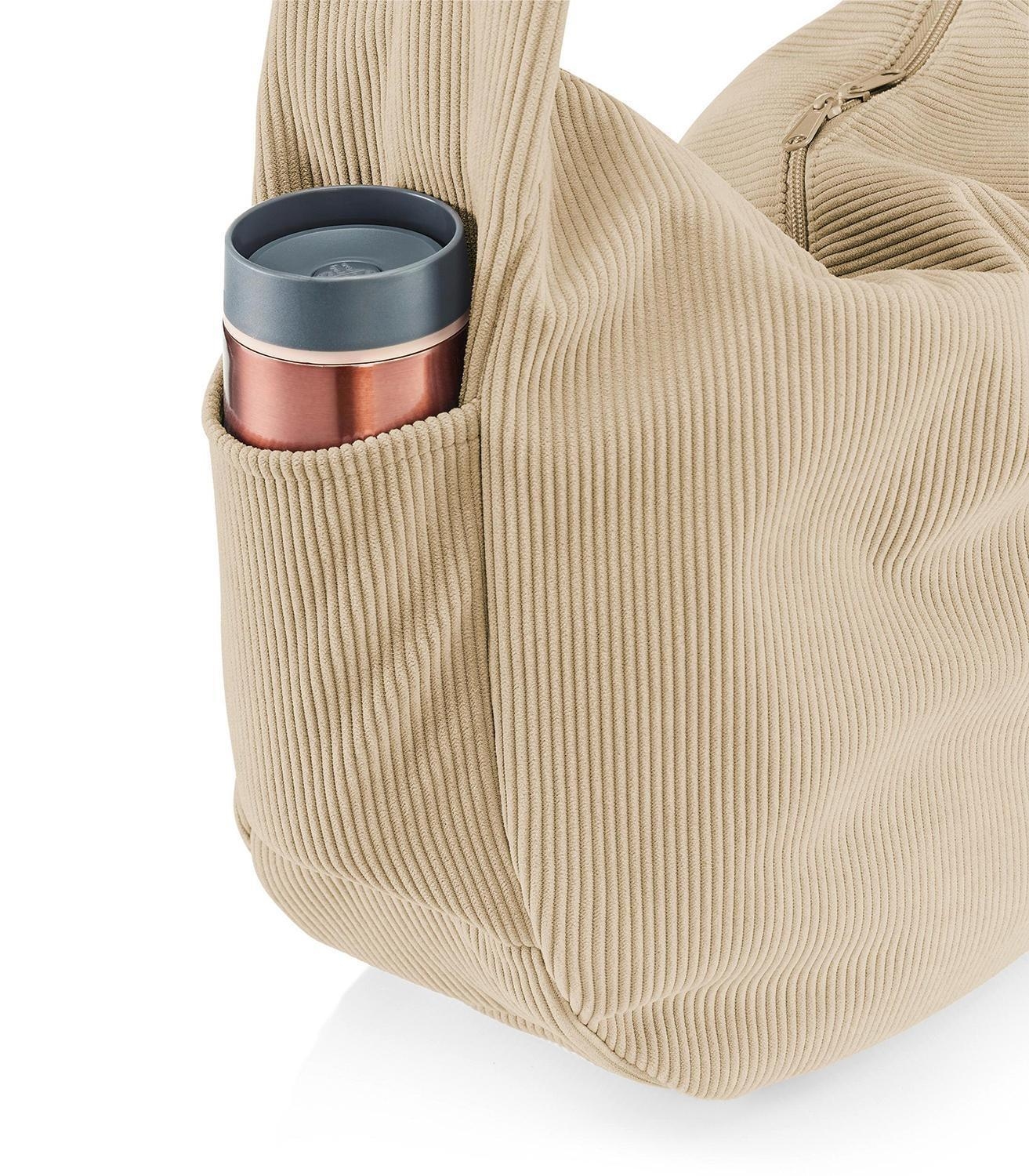 - Umhängetasche aus recyceltem Polyester mit Cordoptik in Sandfarben
