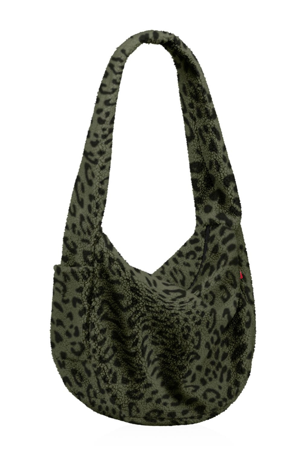 33 x 48 cm - Olivgrün - Schwarz - Polyester - Teddystoff - mit Reißverschluss