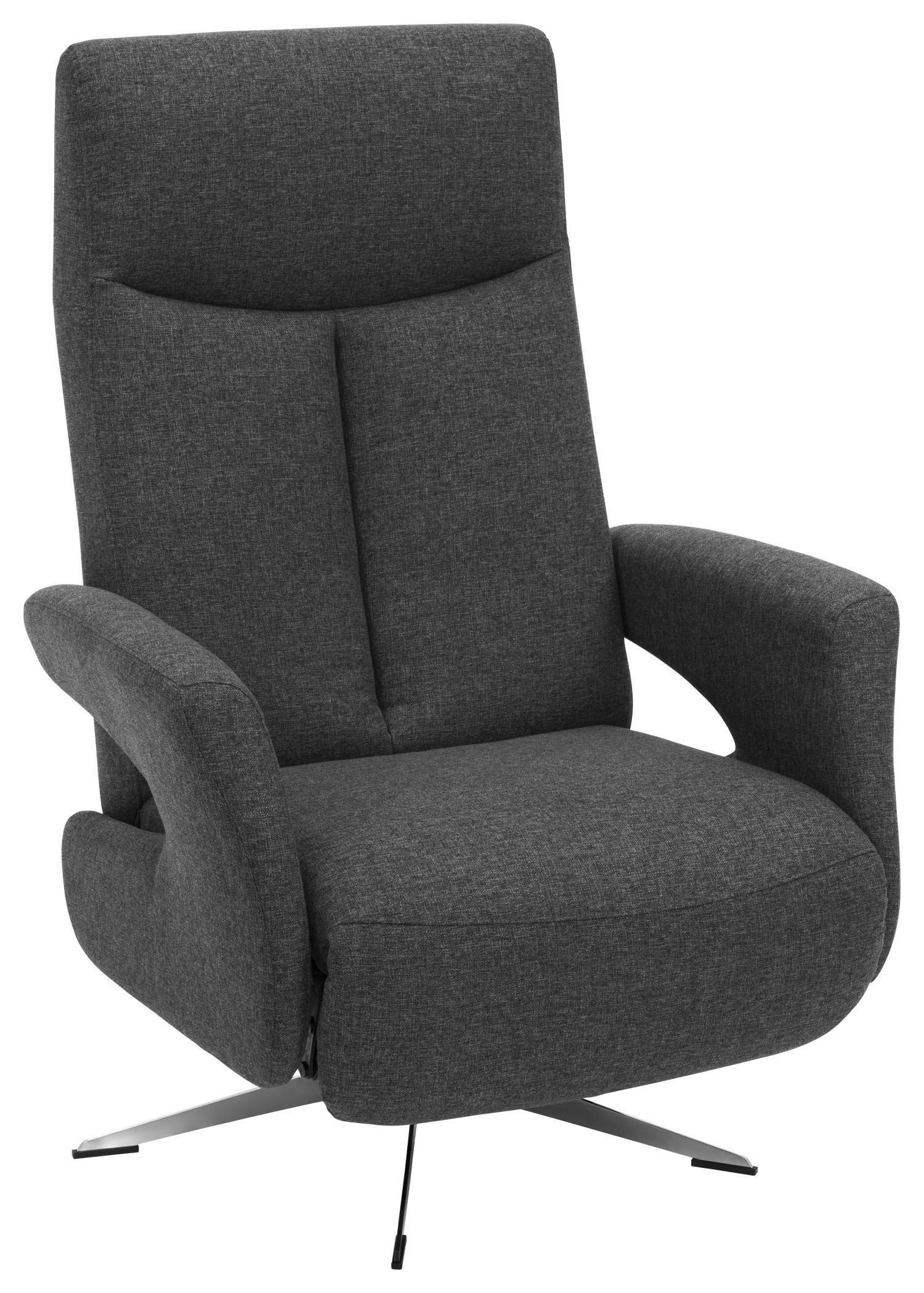 Der moderne Relaxsessel verfügt über einen Webstoffbezug in anthrazit und einen Sternfuß in chromfarben. Die Polsterung aus Formkaltschaum auf Nosagfedern sorgt für einen hohen Sitzkomfort.