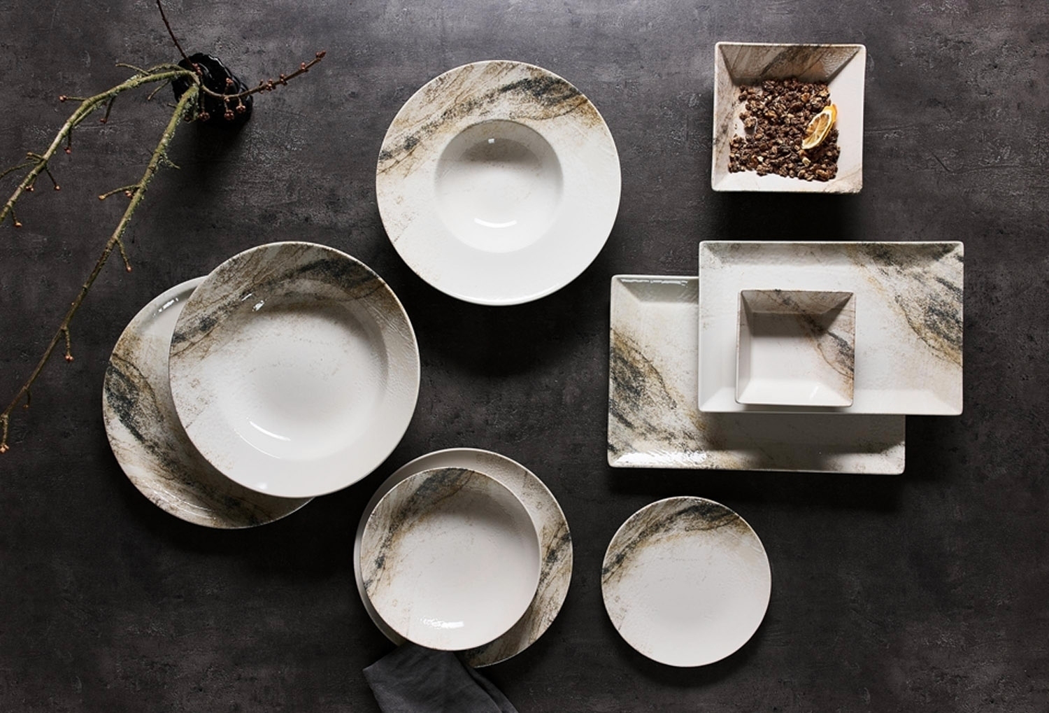 Der Gourmetteller AREZZO ist ein Must-have für Ihre Tischkultur. Mit einem Durchmesser von 28 cm bietet er ausreichend Platz für kulinarische Köstlichkeiten. Sein marmoriertes Design in Weiß und Braun verleiht jedem Deck eine edle Note. Aus hochwertigem Steinzeug gefertigt, ist er spülmaschinengeeignet und daher besonders praktisch. Perfekt für anspruchsvolle Genießer, die Wert auf Ästhetik und Funktionalität legen.