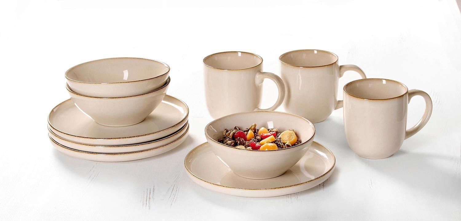 Die Müslischale OLIVIA der Marke Ritzenhoff & Breker ist in der Farbe Beige gehalten und hat ein Fassungsvermögen von 500 ml. Sie hat einen Durchmesser von 15,5 cm und eine Höhe von 6 cm. Die Schale besteht aus Steingut mit Reaktivglasur und ist mit einer braunen Farbkante versehen. Zudem ist sie spülmaschinenfest und mikrowellengeeignet.