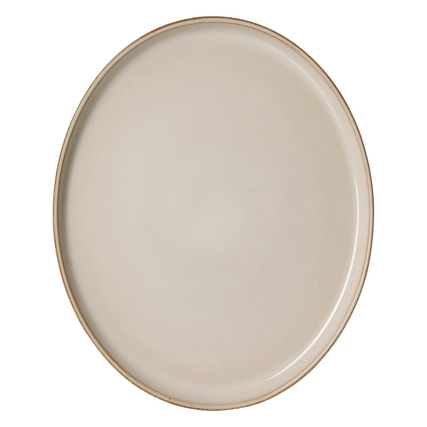 Die Servierplatte OLIVIA der Marke Ritzenhoff & Breker ist in der Farbe Beige gehalten und in ovaler Form gestaltet. Sie hat eine Breite von 29,5 cm, eine Höhe von 2,5 cm, sowie eine Tiefe von 25 cm. Die Platte besteht aus Steingut mit Reaktivglasur und ist mit einer braunen Farbkante versehen. Zudem ist die Servierplatte spülmaschinenfest.