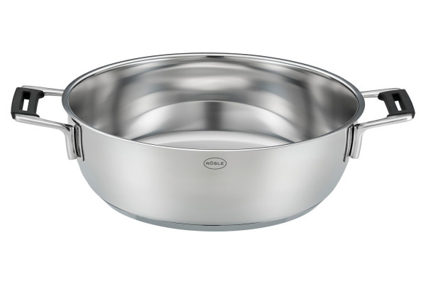 Die Servierpfanne SILENCE PRO von Rösle besticht durch ihre hochwertige Verarbeitung aus Edelstahl und hat einen Durchmesser von 28 cm. Sie ist mit beidseitigen Griffen ausgestattet, die eine Silikonummantelung haben, um eine sichere Handhabung zu gewährleisten. Diese Pfanne ist für alle Herdarten geeignet und hält Temperaturen bis zu 200 °C stand. Darüber hinaus ist sie spülmaschinengeeignet, was die Reinigung besonders einfach macht. Ideal für vielseitige Kochanwendungen und anspruchsvolle Küchen.