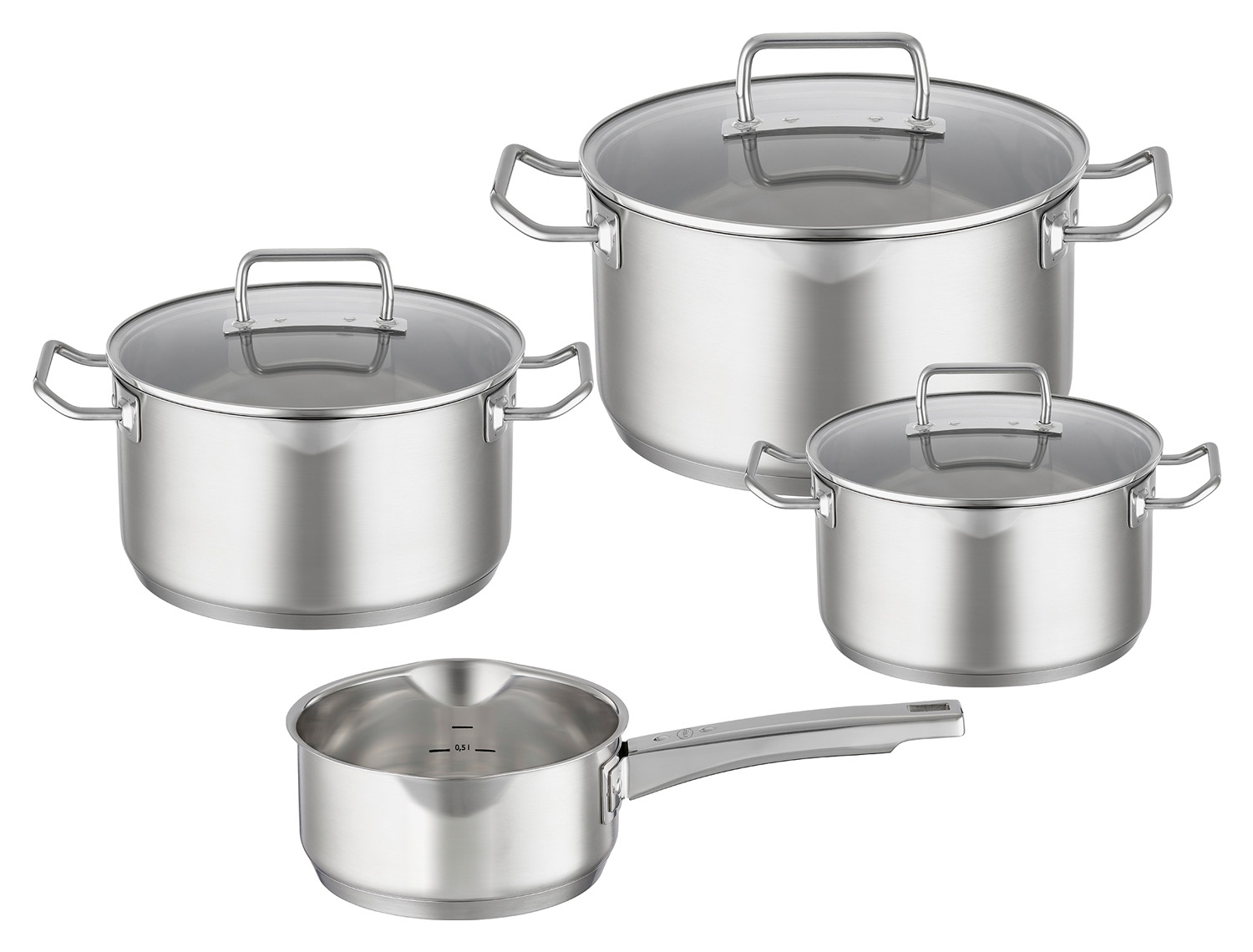 | Lieferumfang: | 4-tlg. Topf-Set: 3 Fleischtöpfe mit Deckel und 1 Stielkasserolle |
