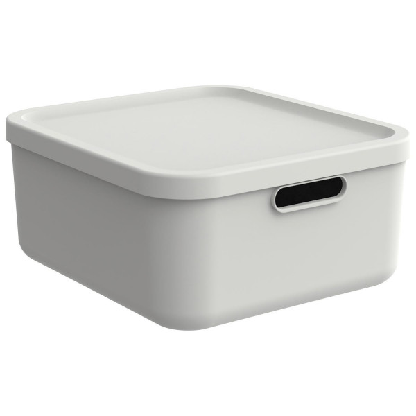 Die stapelbare Aufbewahrungsbox ALBULA von Rotho in Weiß überzeugt mit einem Volumen von 20 Litern und praktischen Maßen von 39,5 x 17,7 x 35,5 cm. Sie besteht aus recyceltem Kunststoff, ist stabil und umweltfreundlich zugleich. Dank Deckel und zwei integrierten Tragegriffen eignet sich die Box ideal zum Verstauen und Transportieren verschiedenster Dinge. Ob im Haushalt, Büro oder Keller – diese vielseitige Box schafft Ordnung und lässt sich platzsparend stapeln.