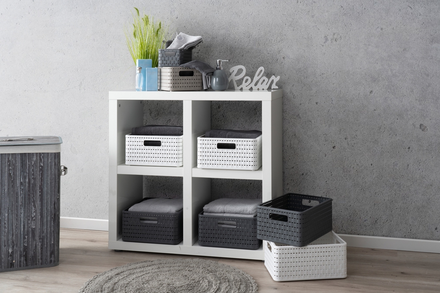 Der Aufbewahrungskorb besteht aus starrem und nicht verformbarem Hartkunststoff.