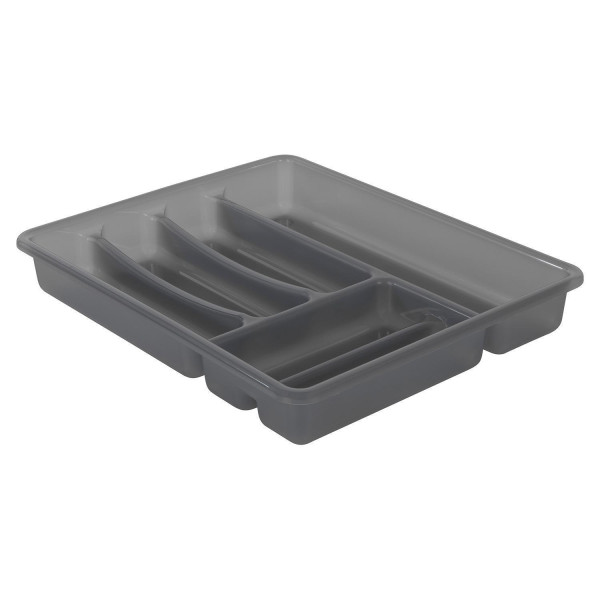 Der Besteckkasten BASIC in Anthrazit ist aus Kunststoff gefertigt. Er hat eine Breite von 32 cm und eine Tiefe von 39 cm bei einer Höhe von 6 cm. Der Besteckkasten verfügt über insgesamt 6 Fächer zur Aufbewahrung von Besteck sowie ein extra großes Fach für Kochlöffel, Dosenöffner und ähnliche Küchenutensilien. Zudem ist der Besteckkasten spülmaschinenfest.