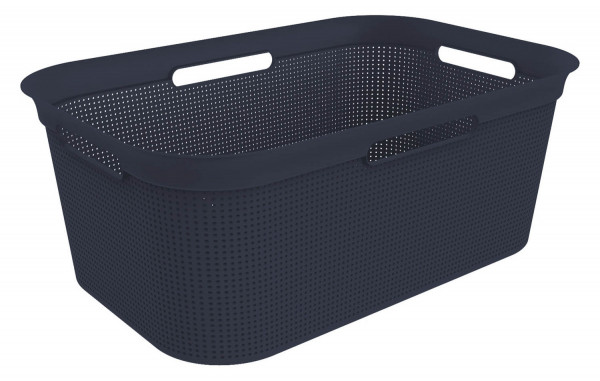 Der Wäschekorb BRISEN von Rotho ist in Dunkelblau erhältlich und bietet ein Fassungsvermögen von 41 Litern. Mit Abmessungen von 60 cm Breite, 23 cm Höhe und 40 cm Tiefe ist er aus robustem Kunststoff gefertigt. Zusätzlich verfügt er über Tragegriffe für einfache Handhabung.