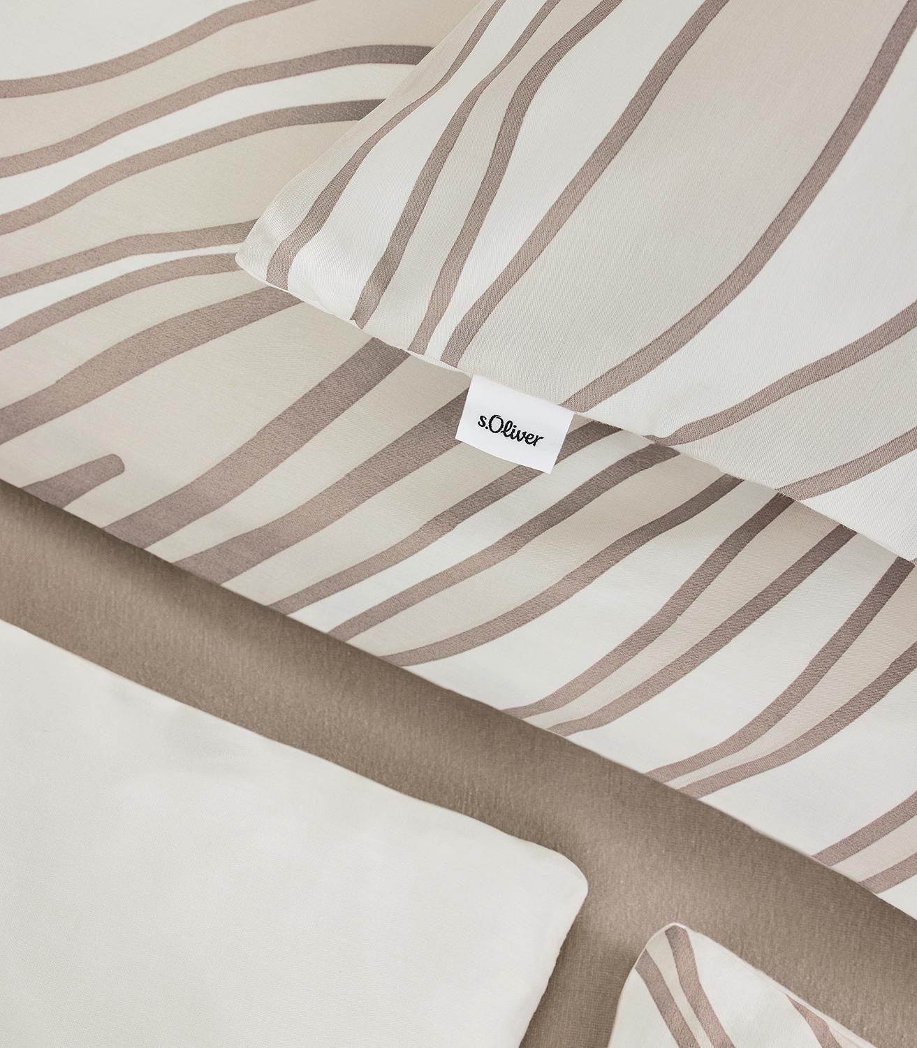 Die Satin-Bettwäsche VELIO von s.Oliver vereint stilvolles Design mit hohem Komfort. Die gemusterte Vorderseite in Braun und Beige und die unifarbene Rückseite in Beige sorgen für einen modernen Look. Das Set besteht aus einem Bettbezug in 135 x 200 cm und einem Kissenbezug in 80 x 80 cm. Gefertigt aus weichem Baumwoll-Satin mit praktischem Reißverschluss, ist sie waschbar bis 60 °C, trocknergeeignet und damit ideal für den täglichen Gebrauch.