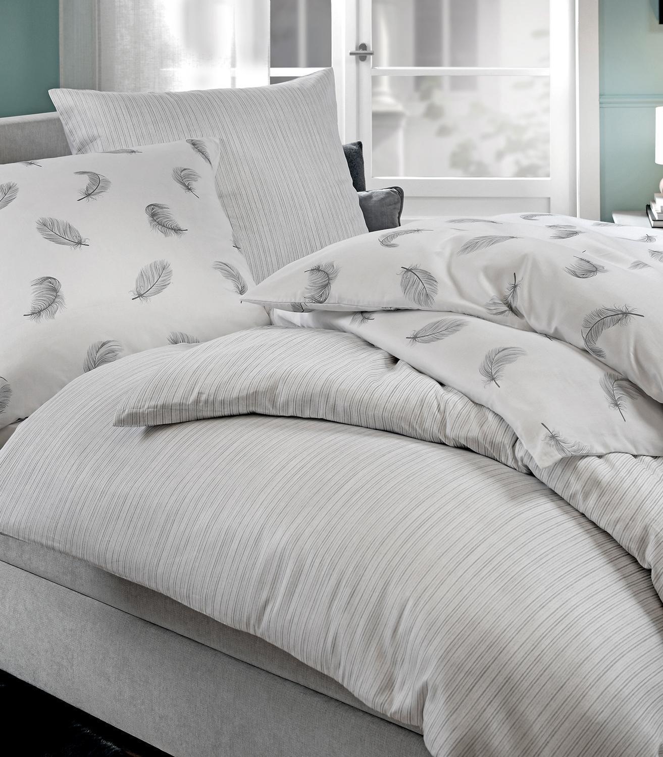 - gestreifte Satin-Bettwäsche in Grau und Weiß