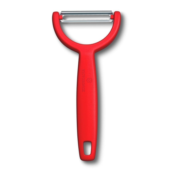 Der Schäler YPSO besteht aus rostfreiem Stahl und ist mit einem Kunststoffgriff in der Farbe Rot ausgestattet. Er hat eine Länge von 14,5 cm, eine Breite von 6,3 cm sowie eine Höhe von 1,8 cm. Der Schäler ist zweischneidig ausgeführt und mit einem Zackenschliff versehen. Zudem ist er spülmaschinengeeignet und verfügt über eine Öse zum Aufhängen.