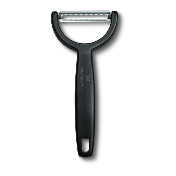 Der Schäler YPSO besteht aus rostfreiem Stahl und ist mit einem Kunststoffgriff in der Farbe Schwarz ausgestattet. Er hat eine Länge von 14,5 cm, eine Breite von 6,3 cm sowie eine Höhe von 1,8 cm. Der Schäler ist zweischneidig ausgeführt und mit einem Zackenschliff versehen. Zudem ist er spülmaschinengeeignet und verfügt über eine Öse zum Aufhängen.