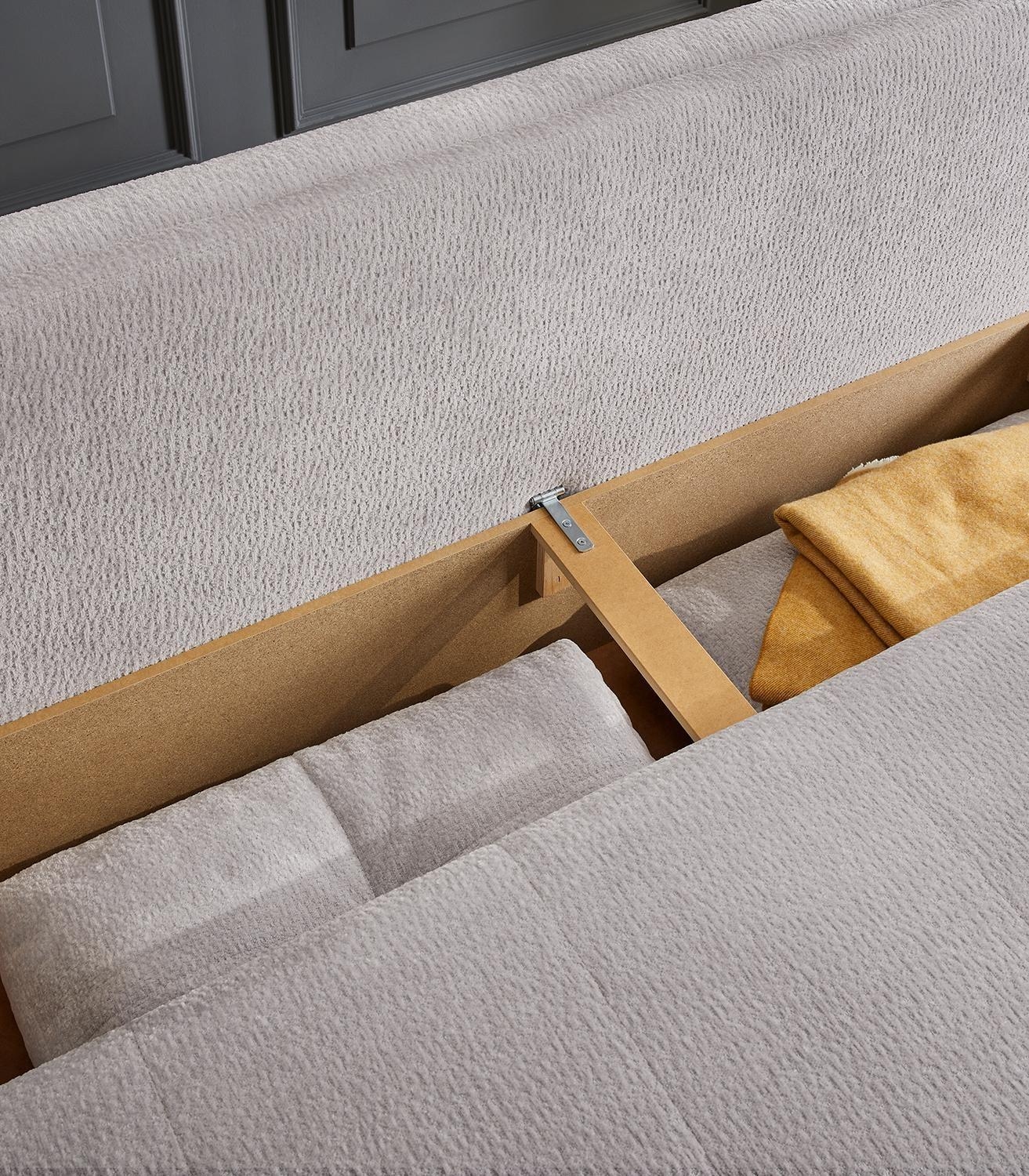 Hellgrau - Chenille - mit Gästebettfunktion und Bettkasten - mit Kissen