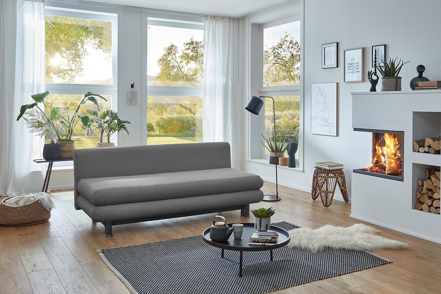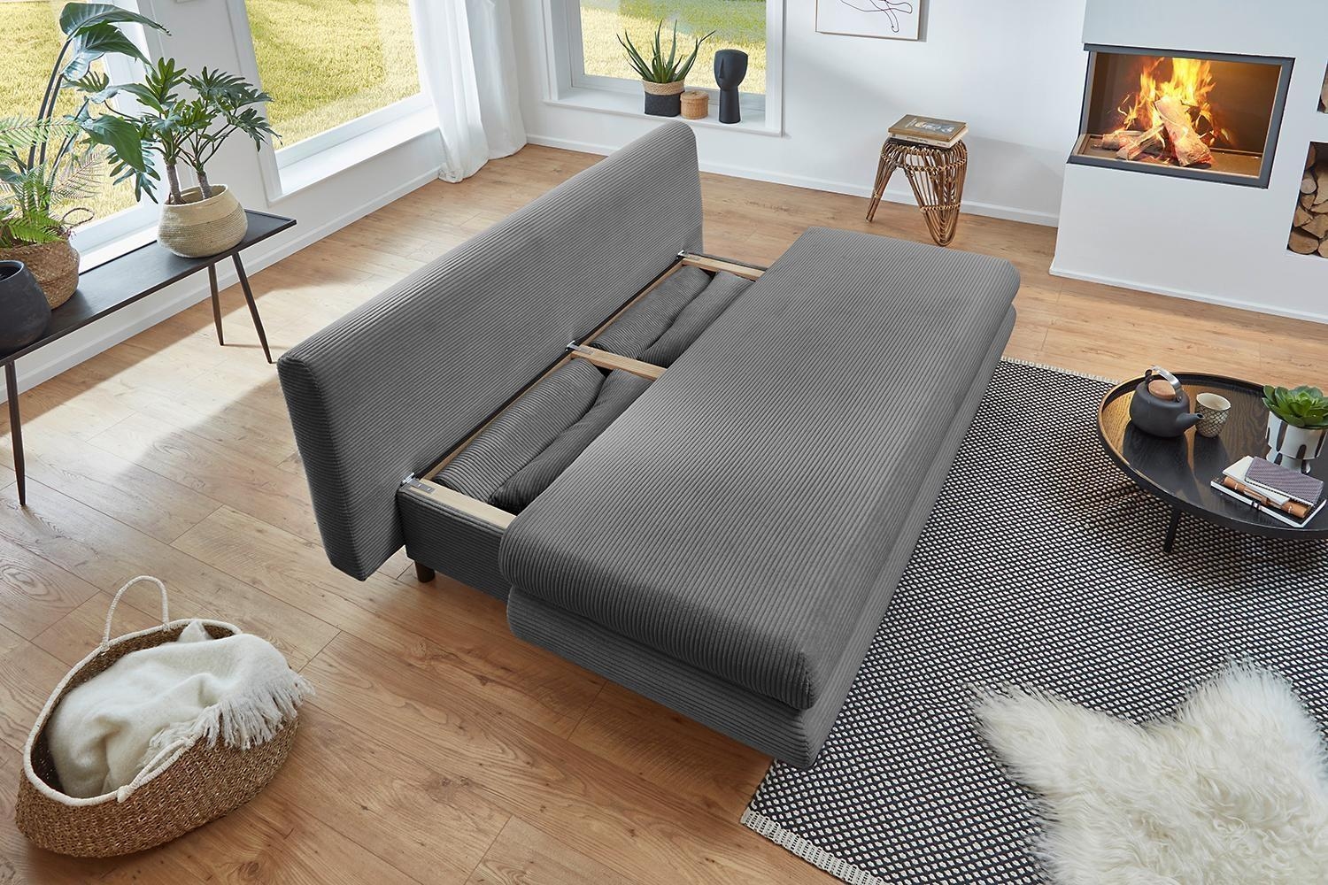 Grau - Breitcord - mit Gästebettfunktion und Bettkasten - mit Kissen