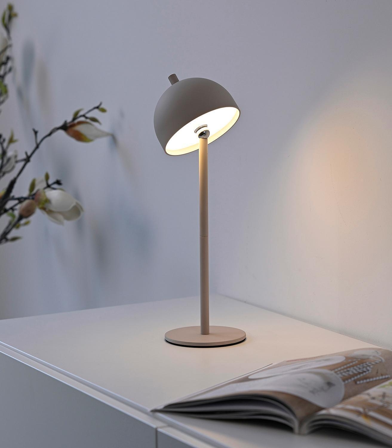 Die Akku LED-Tischlampe BELLIS der Marke Schöner Wohnen besteht aus Metall und ist in Sandfarben ausgeführt. Sie verfügt über drei verschiedene Montagemöglichkeiten und kann unter anderem als Tischlampe, Flaschenlampe oder Aufliegelampe verwendet werden. Der schwenkbare Leuchtenkopf ermöglicht eine flexible Ausrichtung des Lichts. Die Lampe ist mit einem Touchsensor ausgestattet, über den sie dimmbar ist. Zusätzlich verfügt sie über eine Memoryfunktion, die die zuletzt eingestellte Helligkeit speichert.