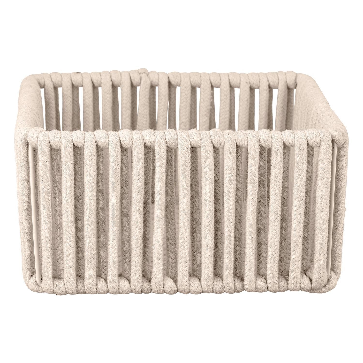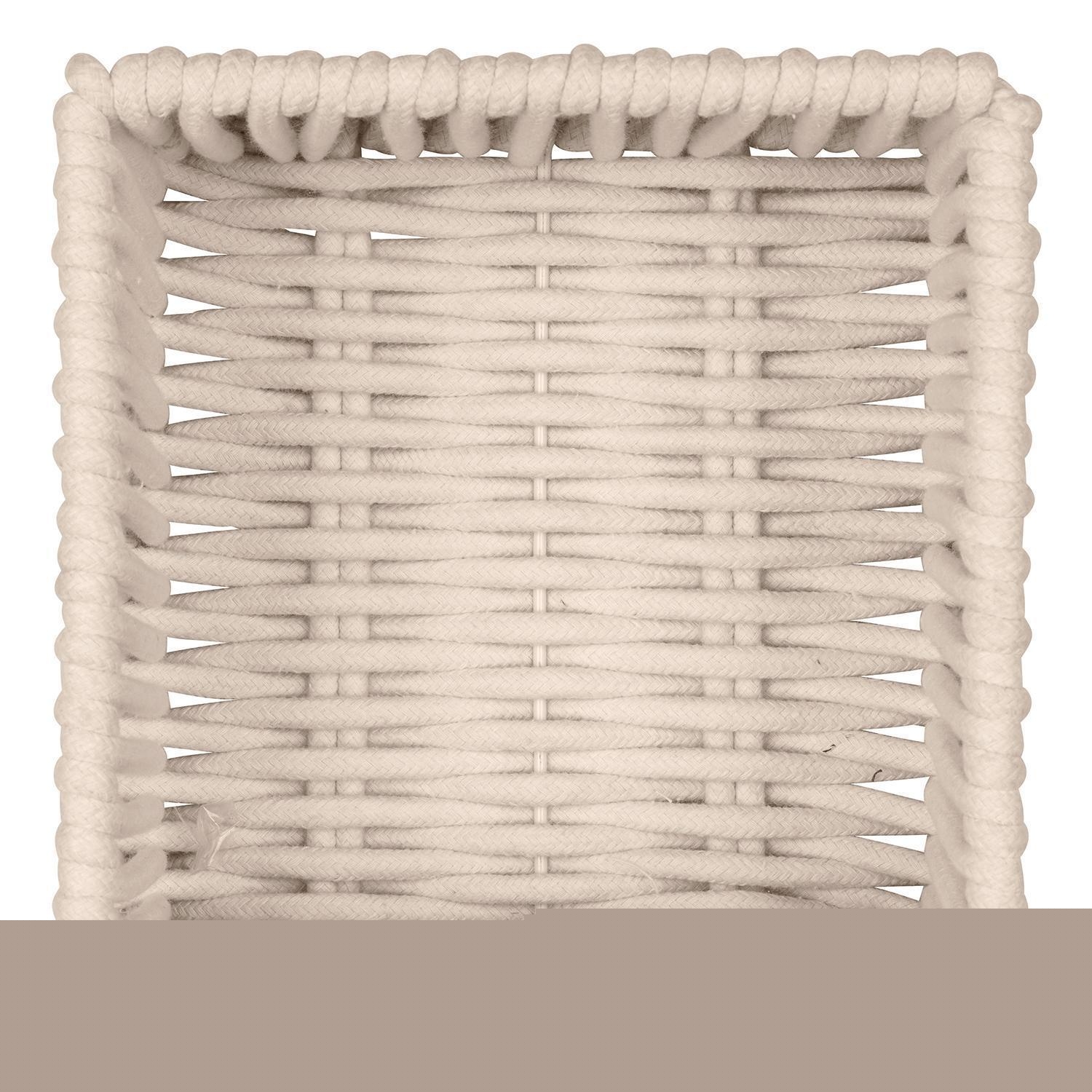 Der Aufbewahrungskorb in Beige ist eine stilvolle und praktische Lösung zur Aufbewahrung von Büchern, Dekoration und vielem mehr. Mit einer Größe von 20 x 20 cm bietet er ausreichend Platz für verschiedenste Gegenstände. Das robuste Metallgestell sorgt für Stabilität, während die Ummantelung aus Baumwoll-Polyester-Kordel eine ansprechende Optik verleiht. Ein vielseitiges Wohnaccessoire für Ordnung und Stil im Zuhause.