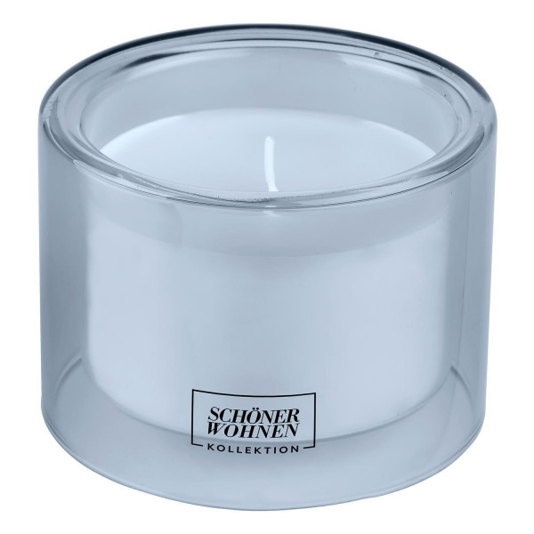 Die Duftkerze M von Schöner Wohnen verleiht jedem Raum eine angenehme Atmosphäre. Sie befindet sich in einem hellblauen, wiederverwendbaren Glas mit einem Durchmesser von 9,5 cm und einer Höhe von 7 cm. Das Glas ist mit 160 g weißem Kerzenwachs gefüllt und duftet nach erfrischendem Soft Cotton. Mit einer Brenndauer von 30 bis 40 Stunden sorgt die Kerze für langanhaltenden Genuss. Perfekt für entspannte Abende oder als stilvolle Dekoration.