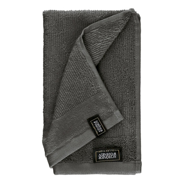 Das Baumwoll Gästetuch SENSE in Anthrazit von Schöner Wohnen ist 30 cm breit und 50 cm lang, angenehm auf der Haut und eine Bereicherung in jedem Badezimmer. Natürlich ist es maschinenwaschbar.