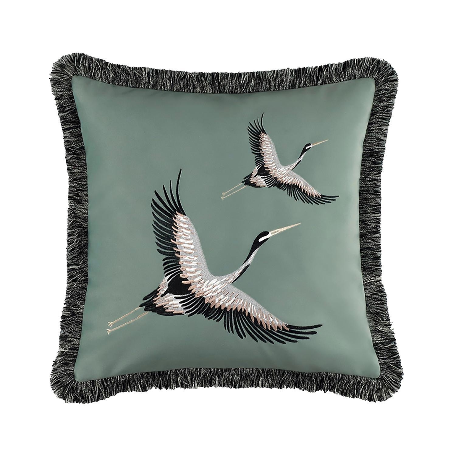 Die Kissenhülle TRAIL von Schöner Wohnen bringt stilvolle Eleganz in Ihr Zuhause. In Grün und Anthrazit gehalten, misst sie 45 x 45 cm und überzeugt mit dekorativen Fransen. Die Vorderseite zeigt zwei kunstvolle Kranich-Motive, während die Rückseite schlicht in Grau gehalten ist und so vielseitige Kombinationsmöglichkeiten bietet. Hergestellt aus 100 % Polyester ist die Hülle strapazierfähig und pflegeleicht. Ein praktischer Reißverschluss erleichtert das Beziehen. Ideal, um dem Wohn- oder Schlafzimmer einen modernen, dekorativen Akzent zu verleihen.