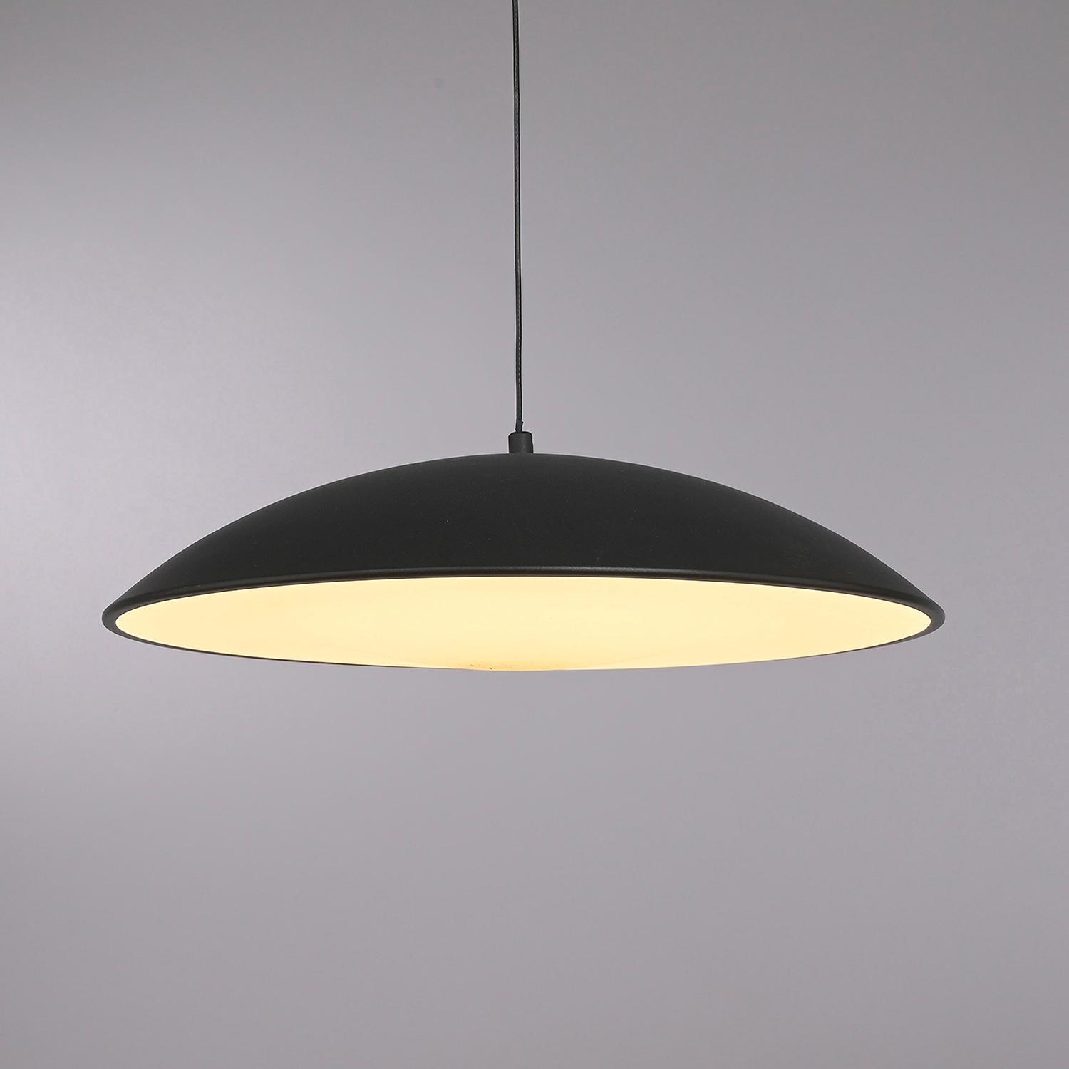 Die LED-Pendelleuchte LENTE der Marke Schöner Wohnen besteht aus schwarz lackiertem Eisen. Sie ist mit einem integrierten LED-Leuchtmittel ausgestattet, das nicht austauschbar ist. Die Leuchte verfügt über eine Leistung von 16 Watt, eine Farbtemperatur von 3000 Kelvin und eine Lichtstärke von 1800 Lumen. Sie ist über einen Wandschalter in drei Stufen dimmbar und mit einer Memoryfunktion versehen. Der Durchmesser beträgt 40 cm, die Höhe 180 cm.